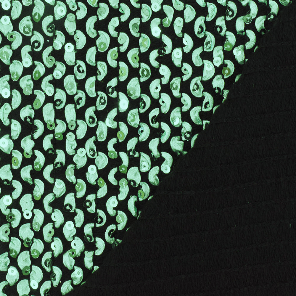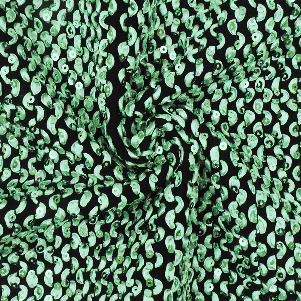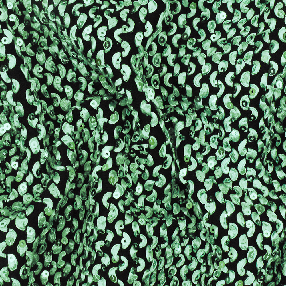 Pearly Green-Black 3D Wave With Sequins Acrylic Poly Woven Jacketing Fabric