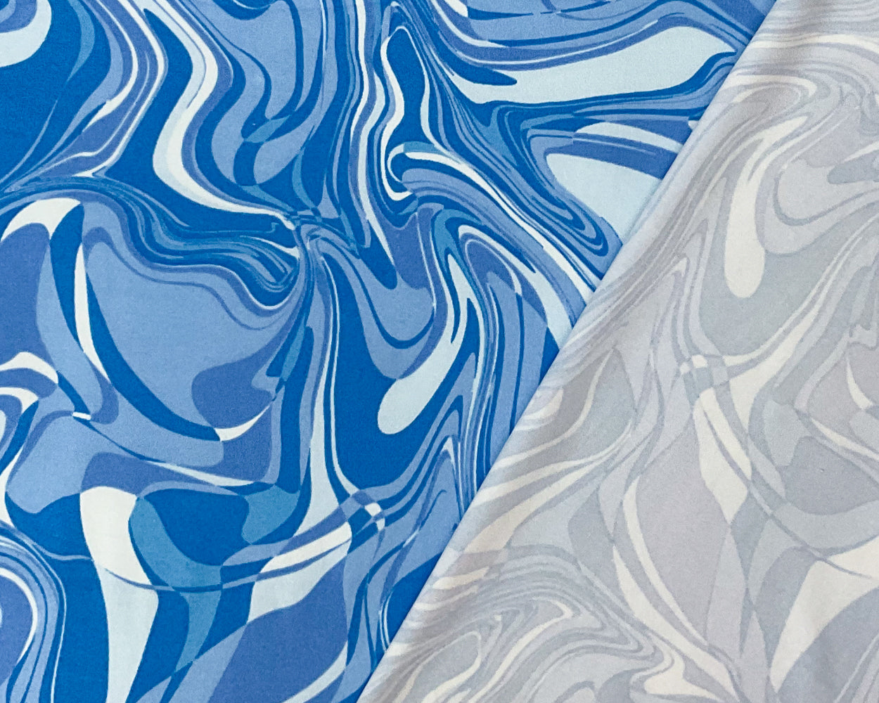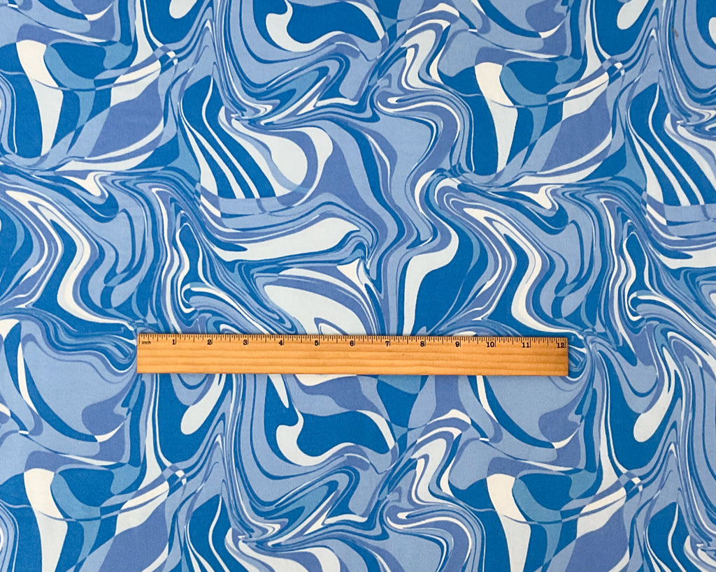 Blue Poly Spandex Stretch Abstract Print DB Jersey Knit Fabric