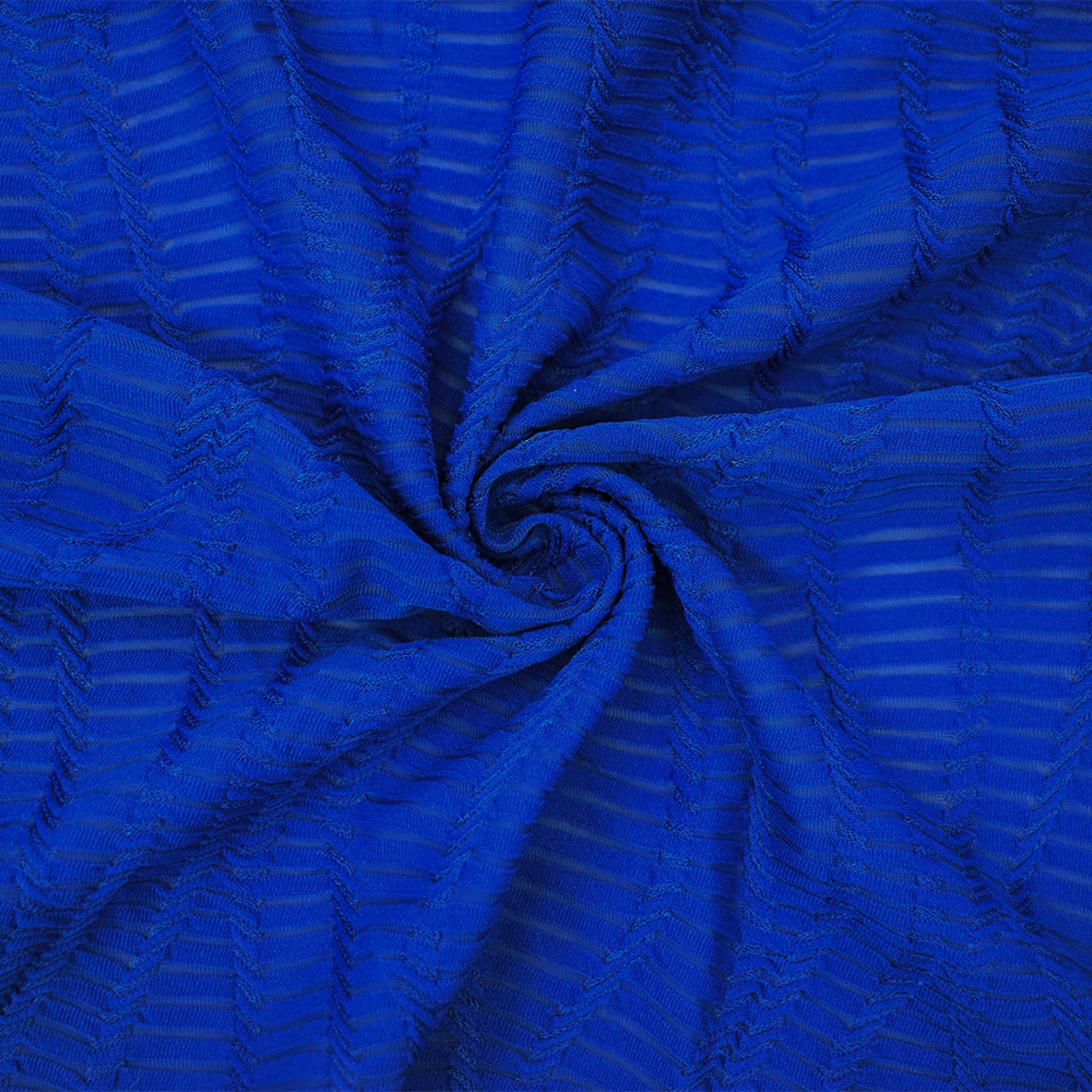 -Blue Poly Stretch Spandex Semi-Sheer Abstract Stripe Knit Fabric