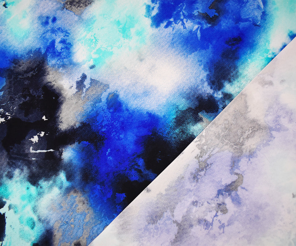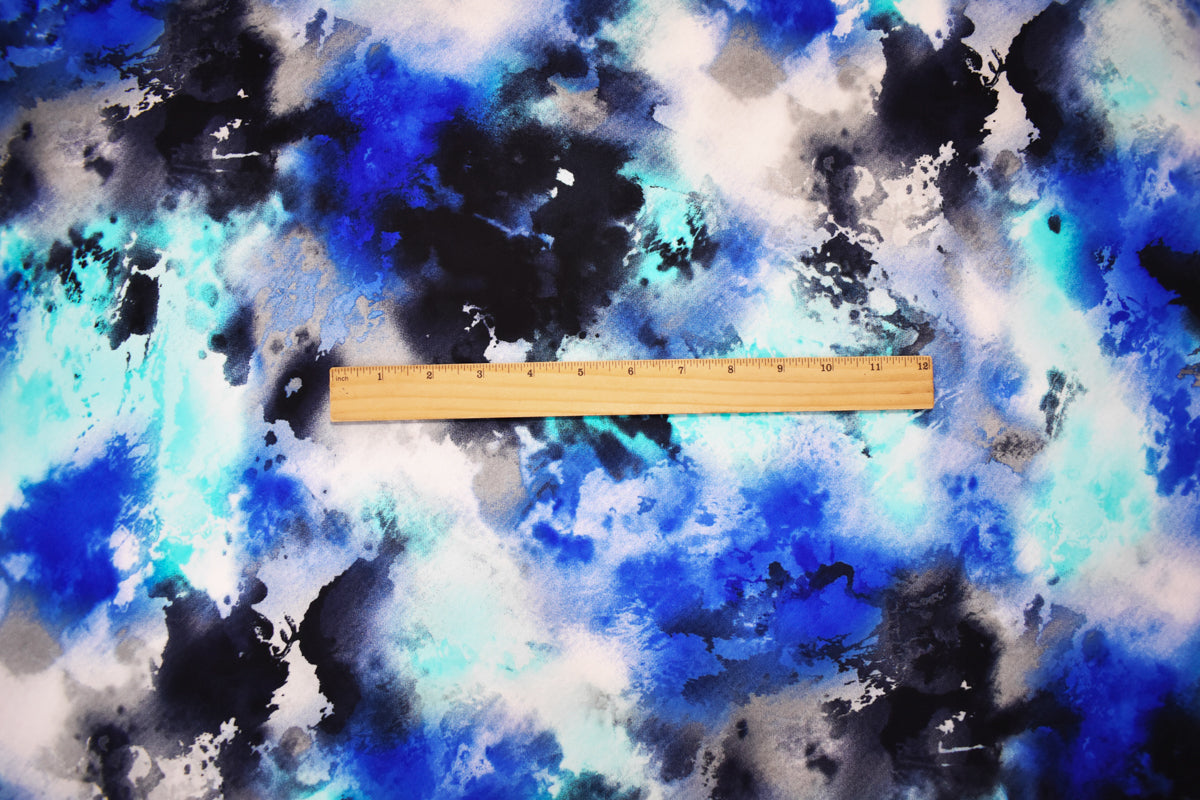 -Poly stretch spandex ITY knit fabric printed with an abstract watercolor inspired pattern