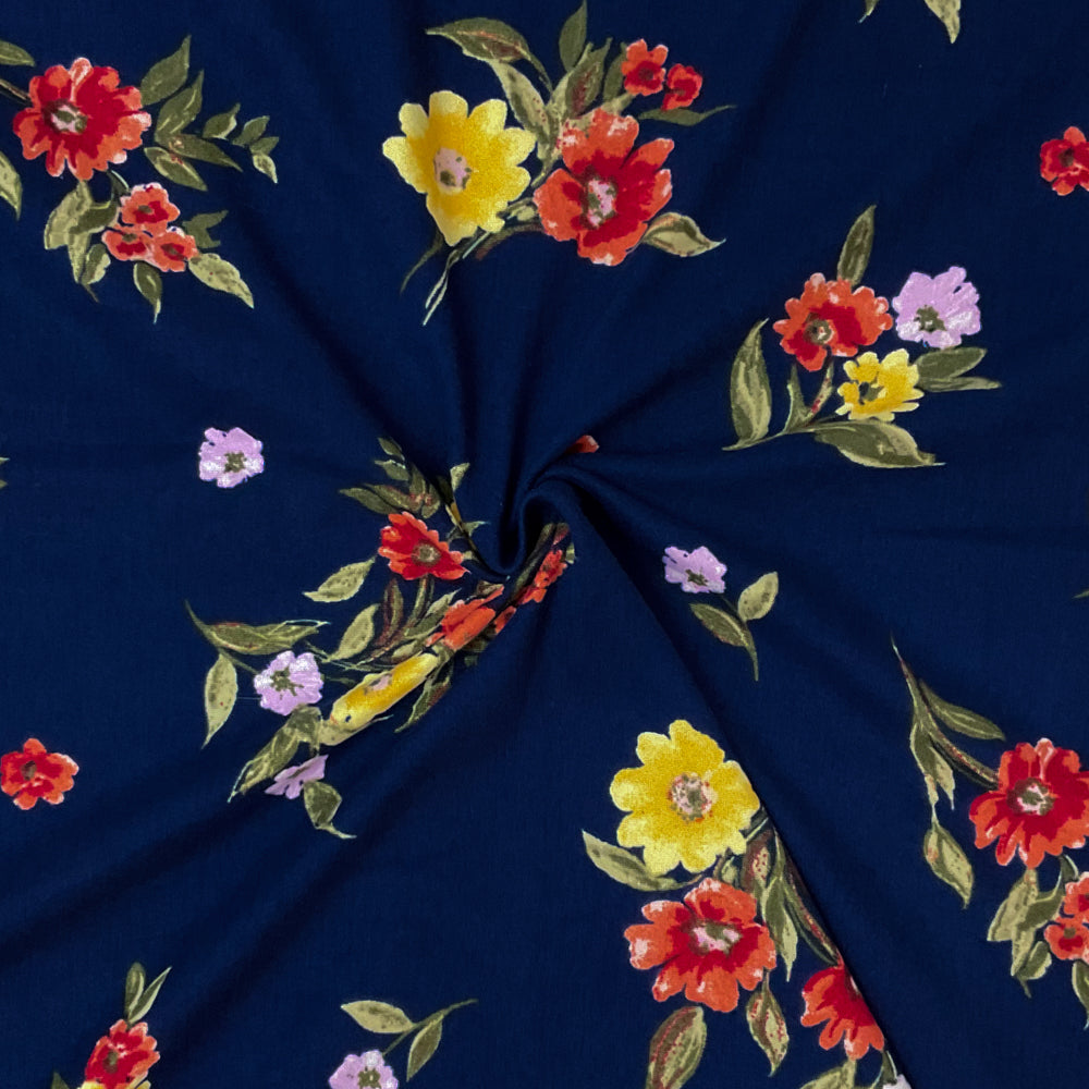 -Blue-Multi Poly Spandex Stretch Floral Print Double Brush Jersey Knit Fabric