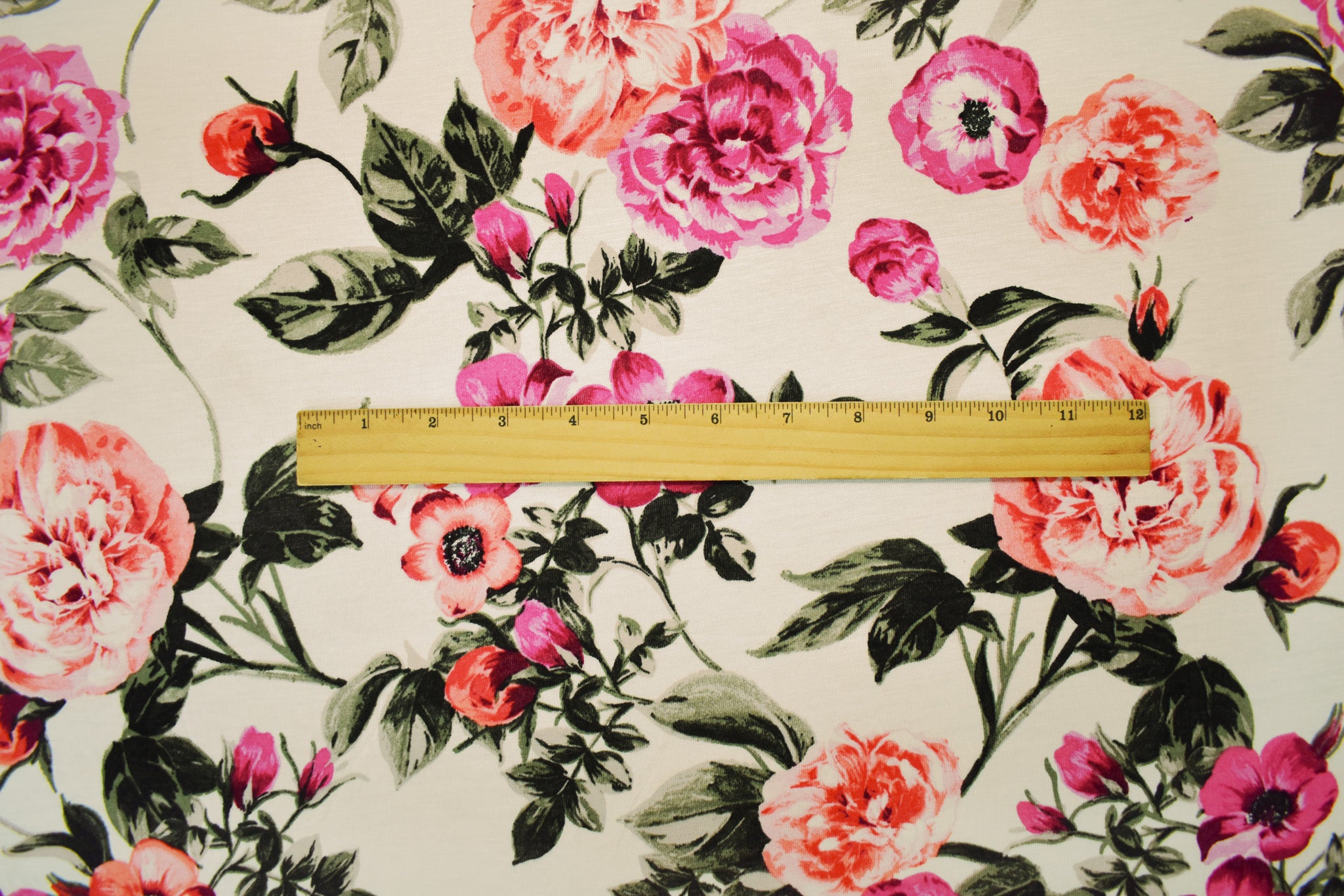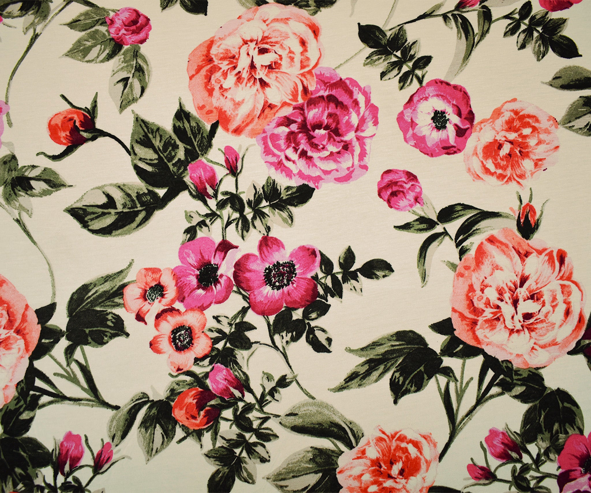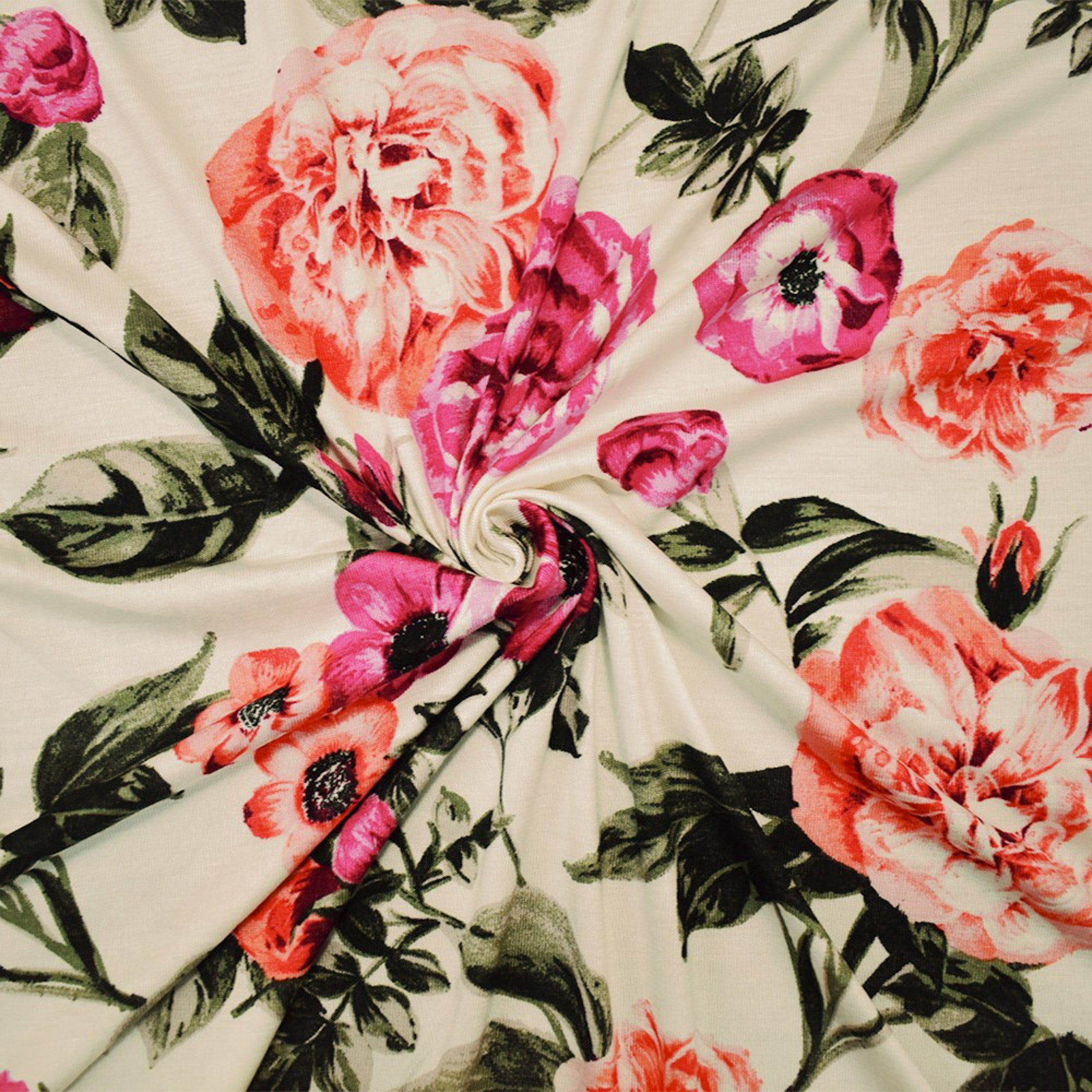 Ivory-Multi Rayon Stretch Spandex Floral Print Jersey Knit Fabric