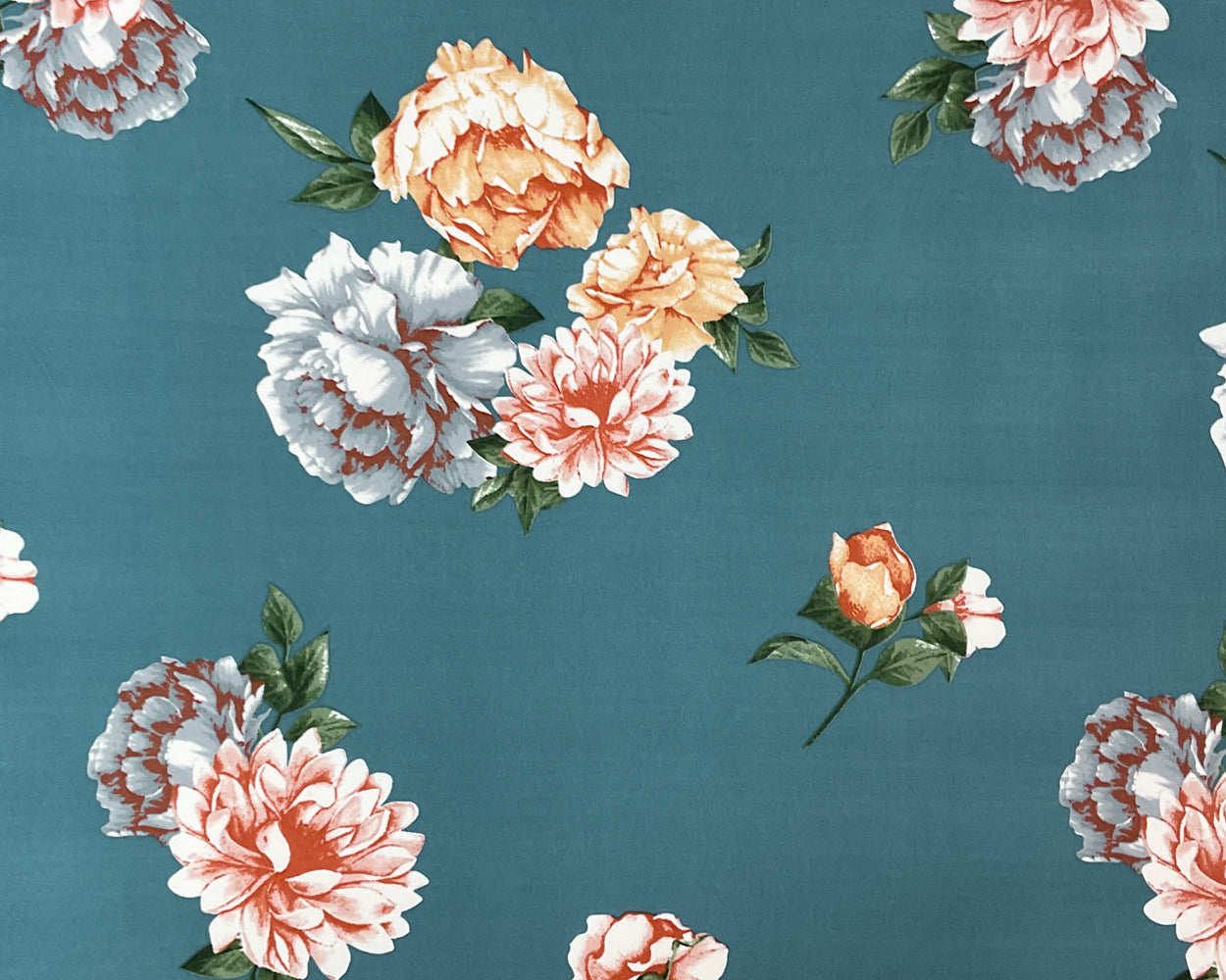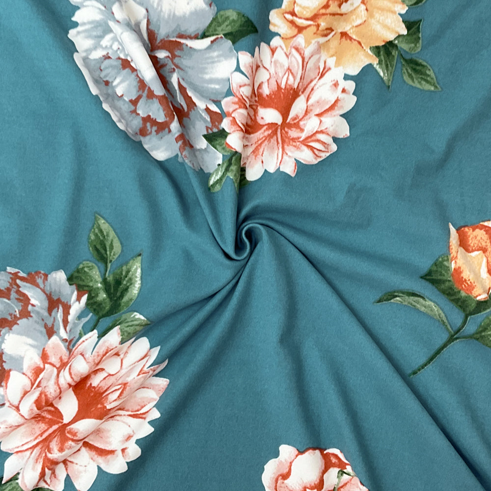 -Teal Blue-Multi Poly Spandex Stretch Floral Print Double Brush Jersey Knit Fabric