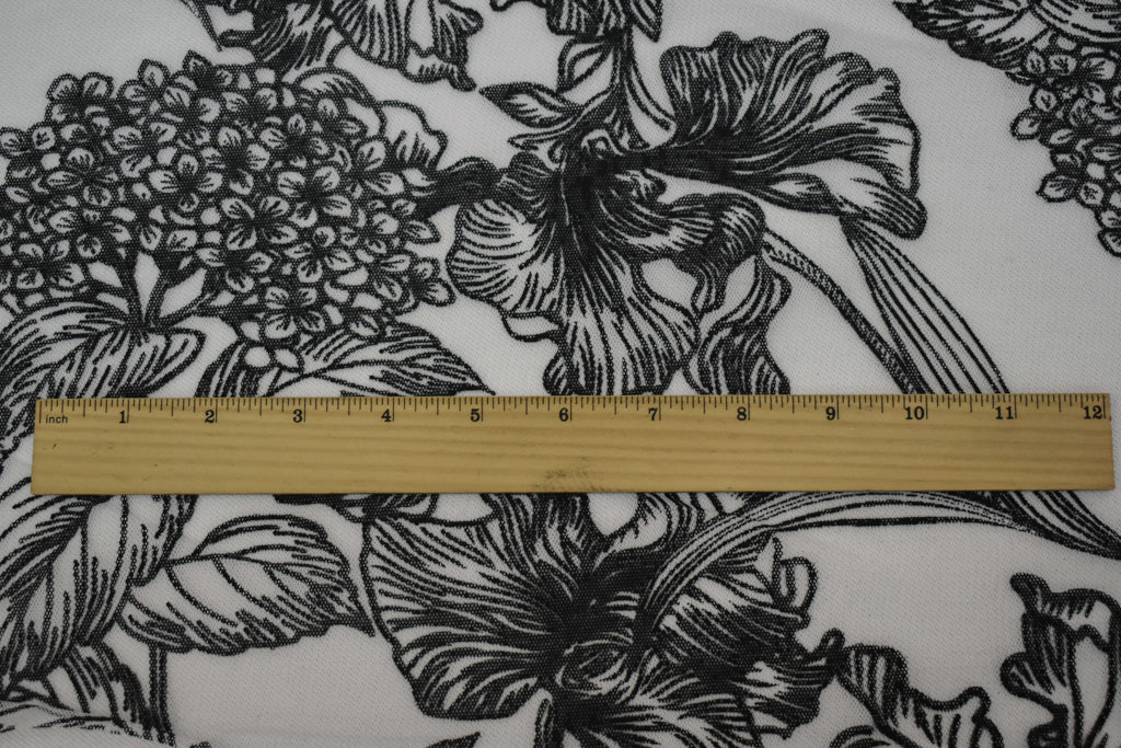 Black-White Nylon Floral Printed Mesh Tulle Knit Fabric