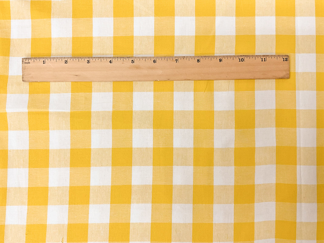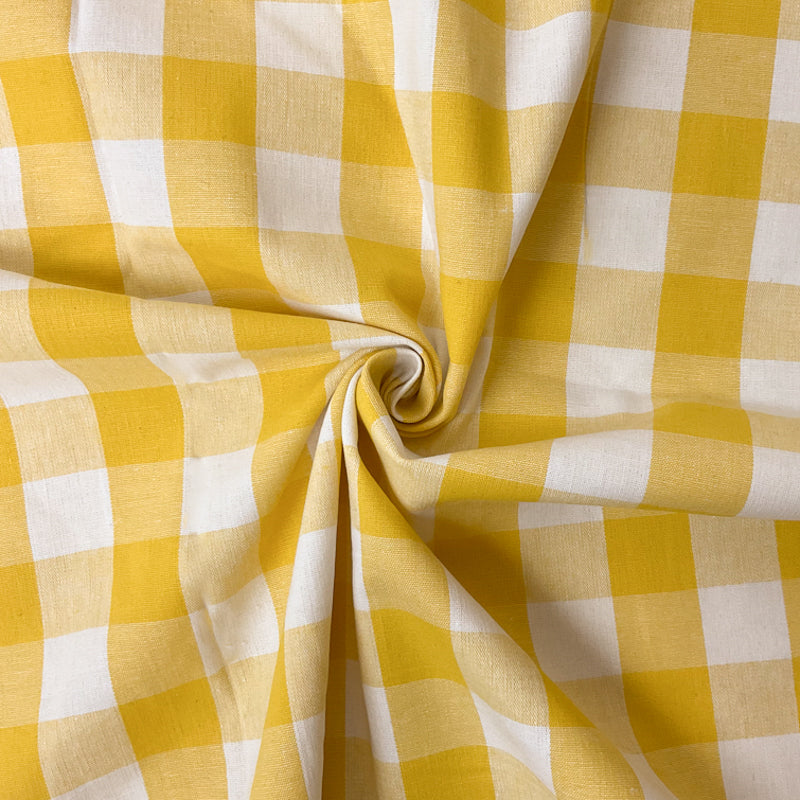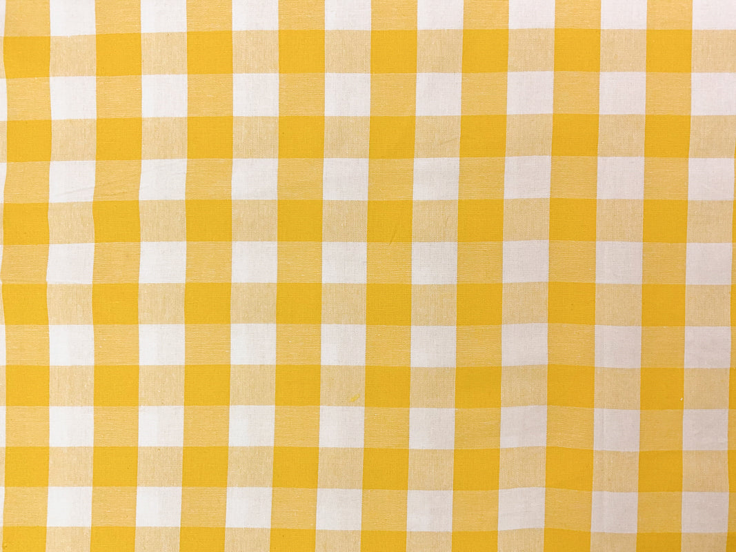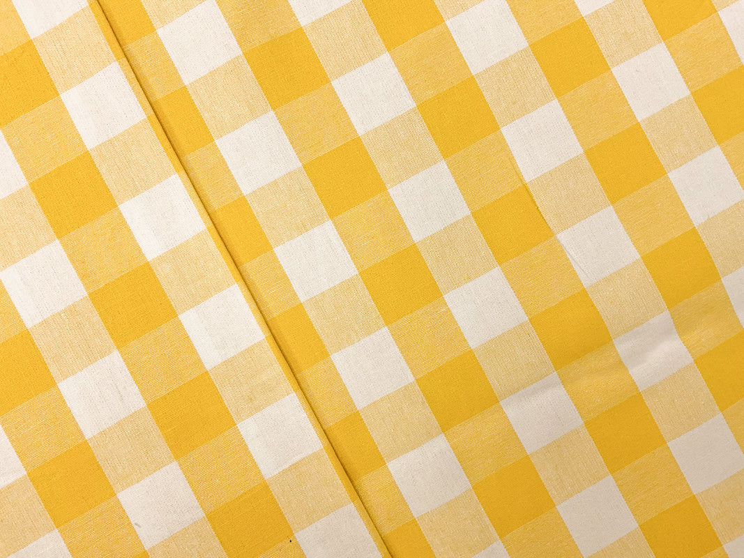 Yellow-White Cotton Spandex Stretch Check Gingham Woven Fabric