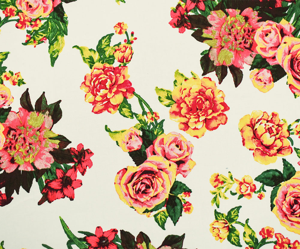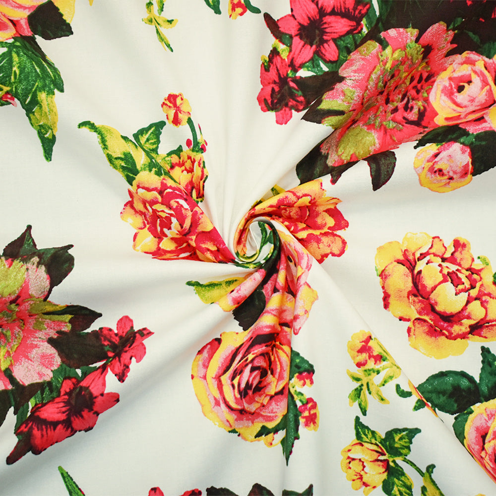 White-Pink-Multi Cotton Floral Print Stretch Spandex Poplin Woven Fabric
