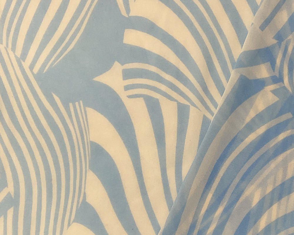 Blue-Ivory Poly Abstract Printed Crepe Georgette Woven Fabric