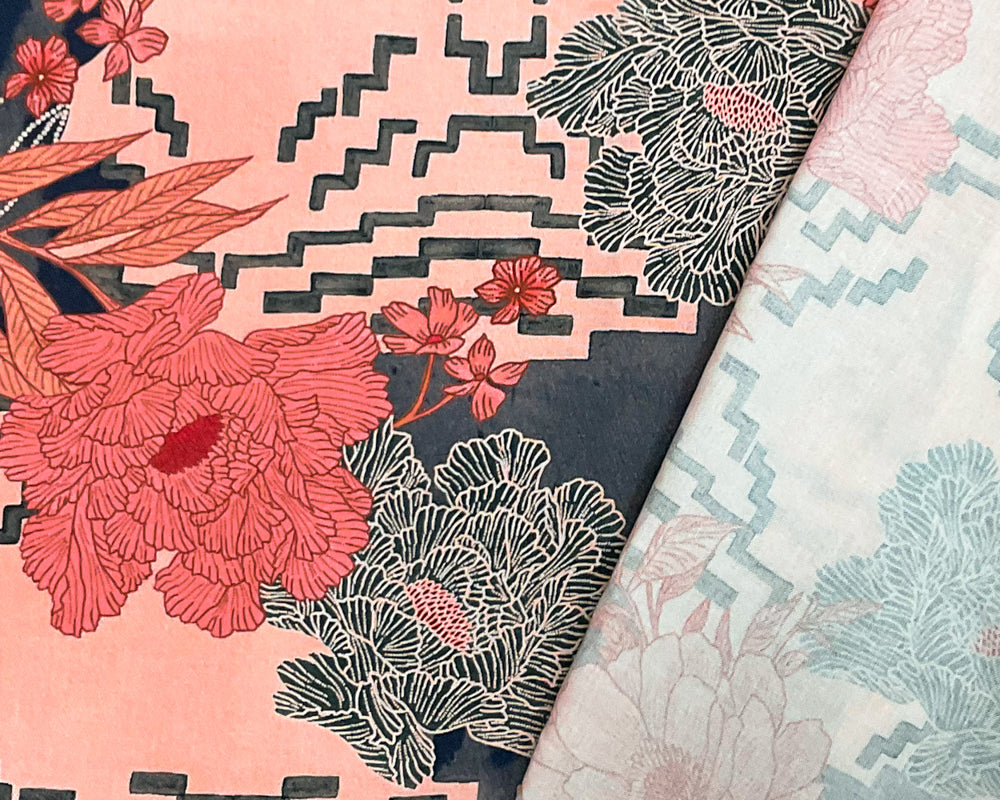 Orange-Gray-Multi Rayon Floral Printed Challis Woven Fabric