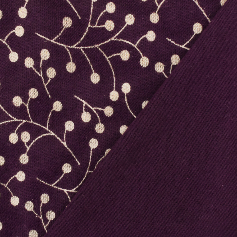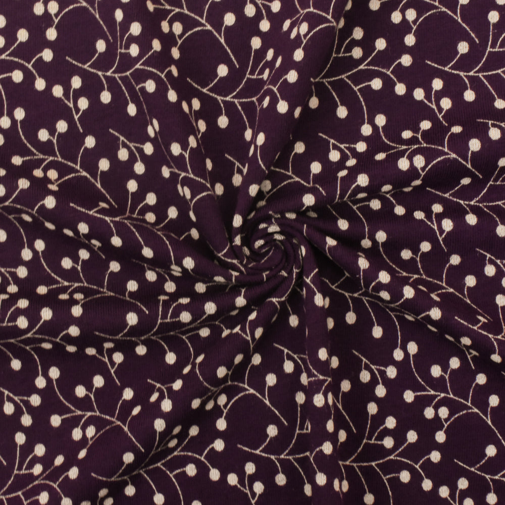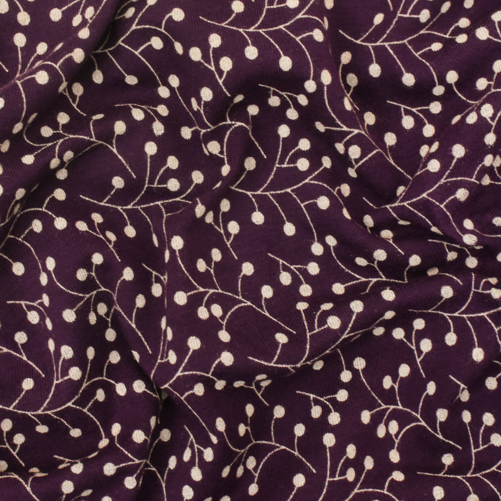 -Berry branch-like pattern printed on a stretch cotton jersey knit fabric