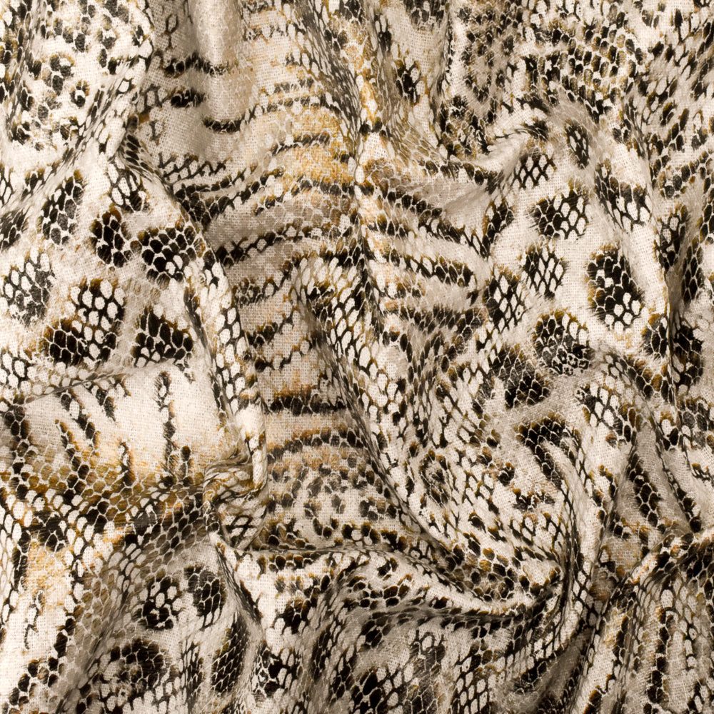 Beige-Black-Multi Reptile Skin Printed Linen Blend Woven Fabric