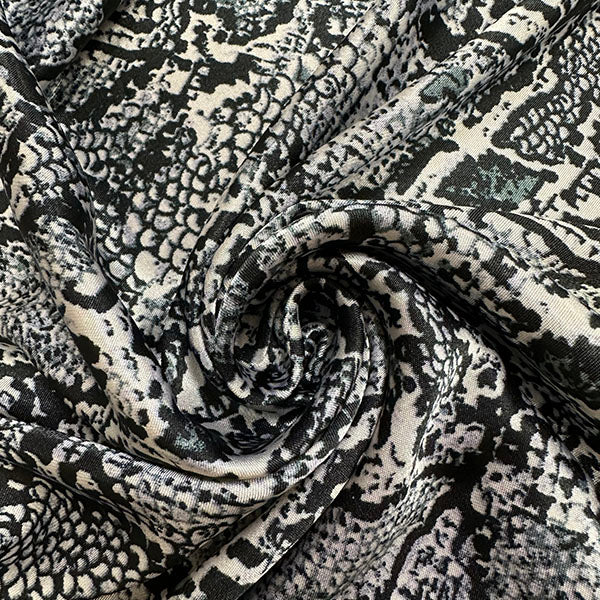 Black Multi Reptile Print Poly Charmeuse Satin Fabric
