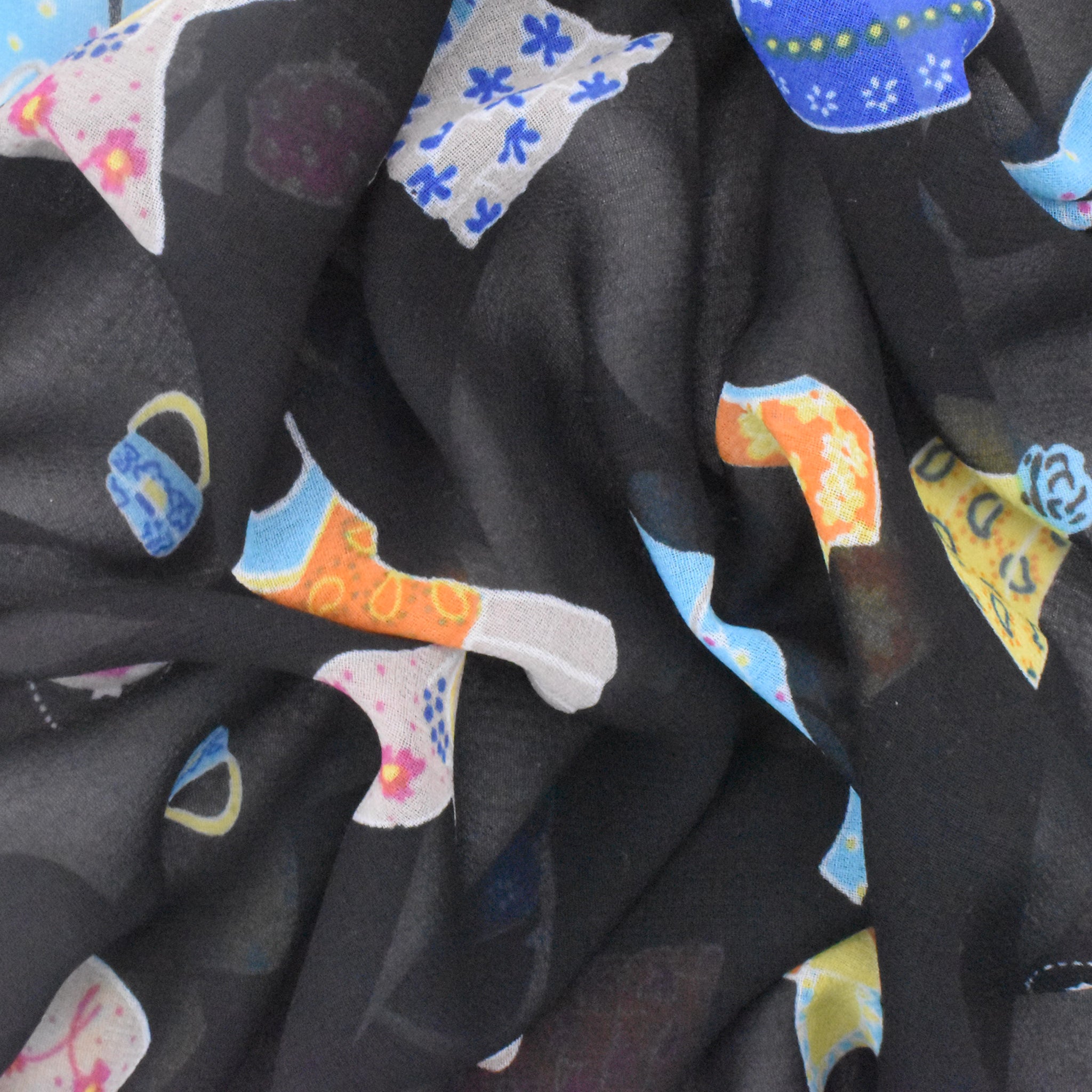 Basic Black-Multi Cartoon Apparel Printed Poly Chiffon Woven Fabric