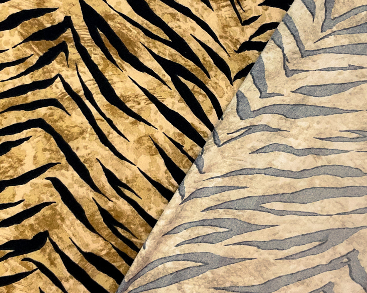 -Black-Beige Poly Spandex Stretch Tiger Print Double Brush Jersey Knit Fabric