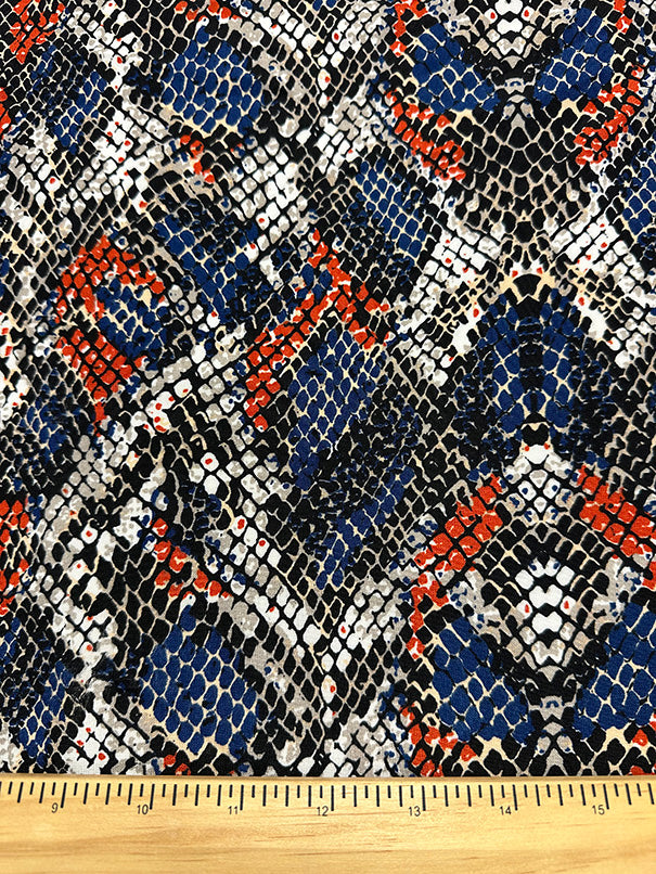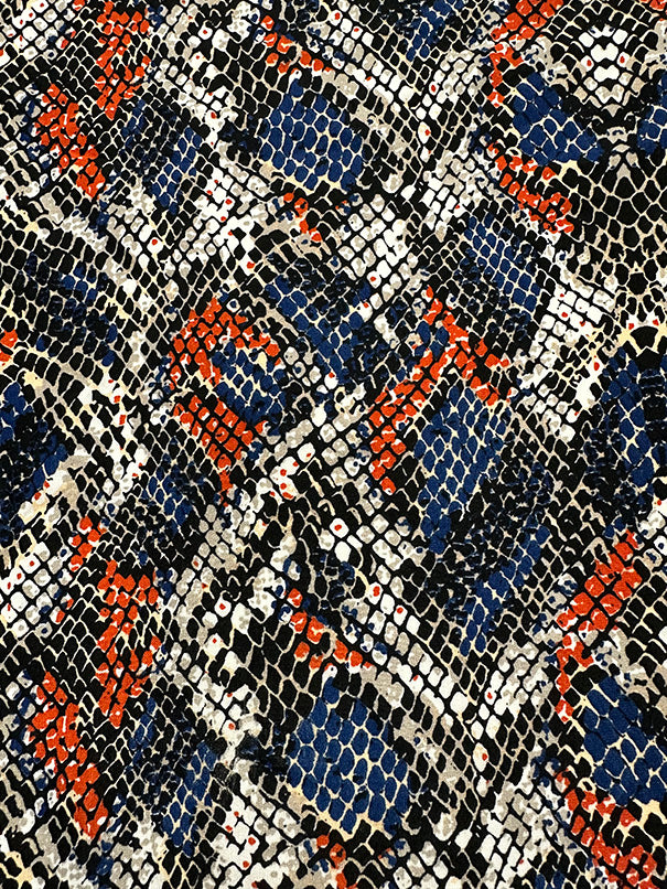 Blue Multi Paisley Print Poly Crepe de Chine Fabric