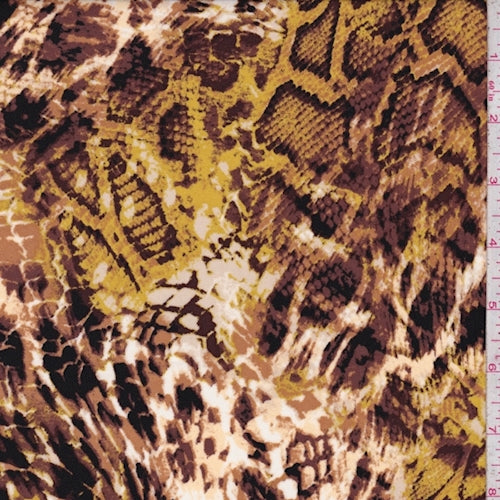 Ivory/Mustard/Mauve Brown Snakeskin Crepe Georgette Fabric