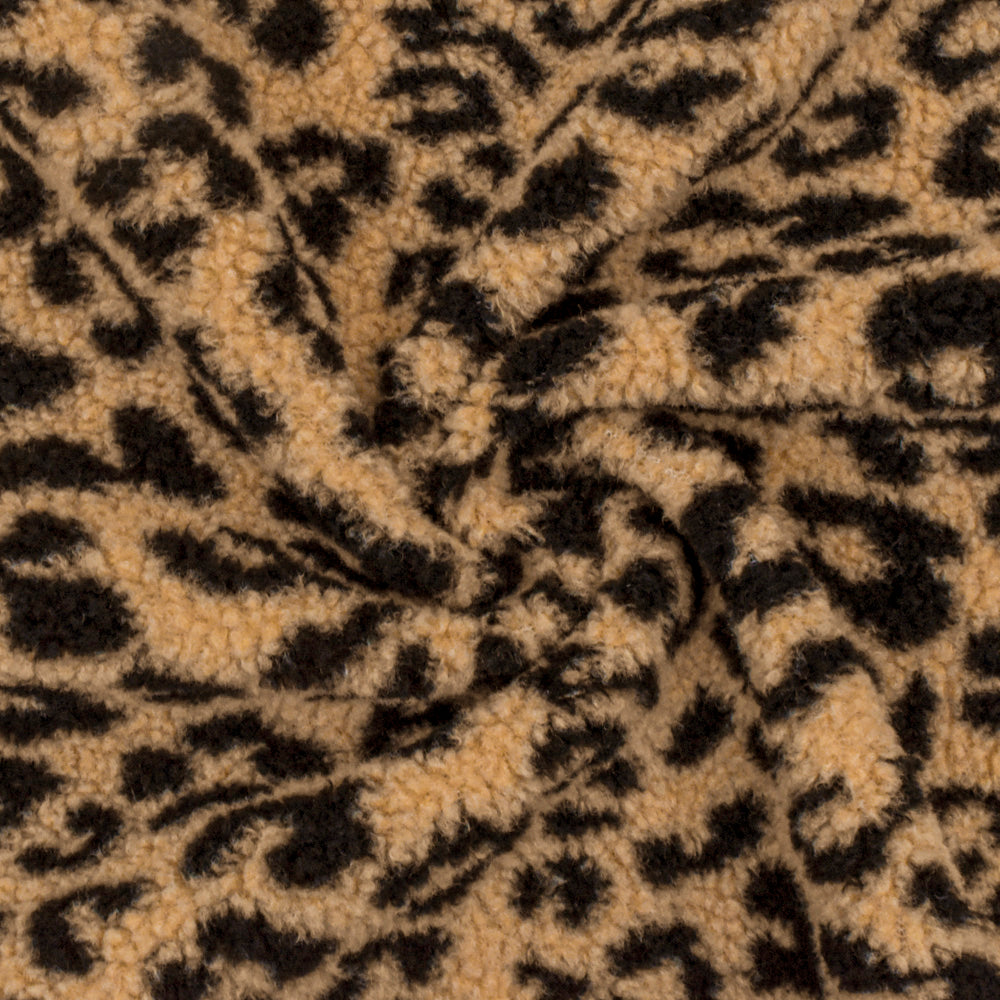 Beige-Black Famous Maker Leopard Sherpa Fleece Fabric