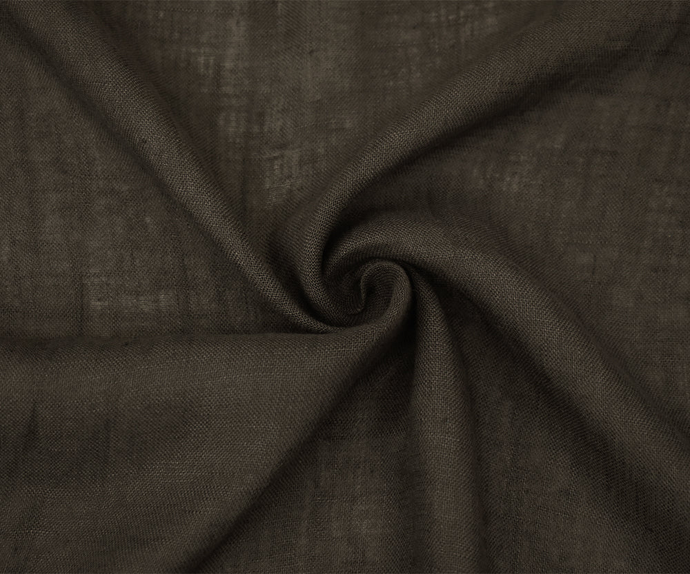 Dark Brown Washed Semi-Sheer Solid Linen Woven Fabric