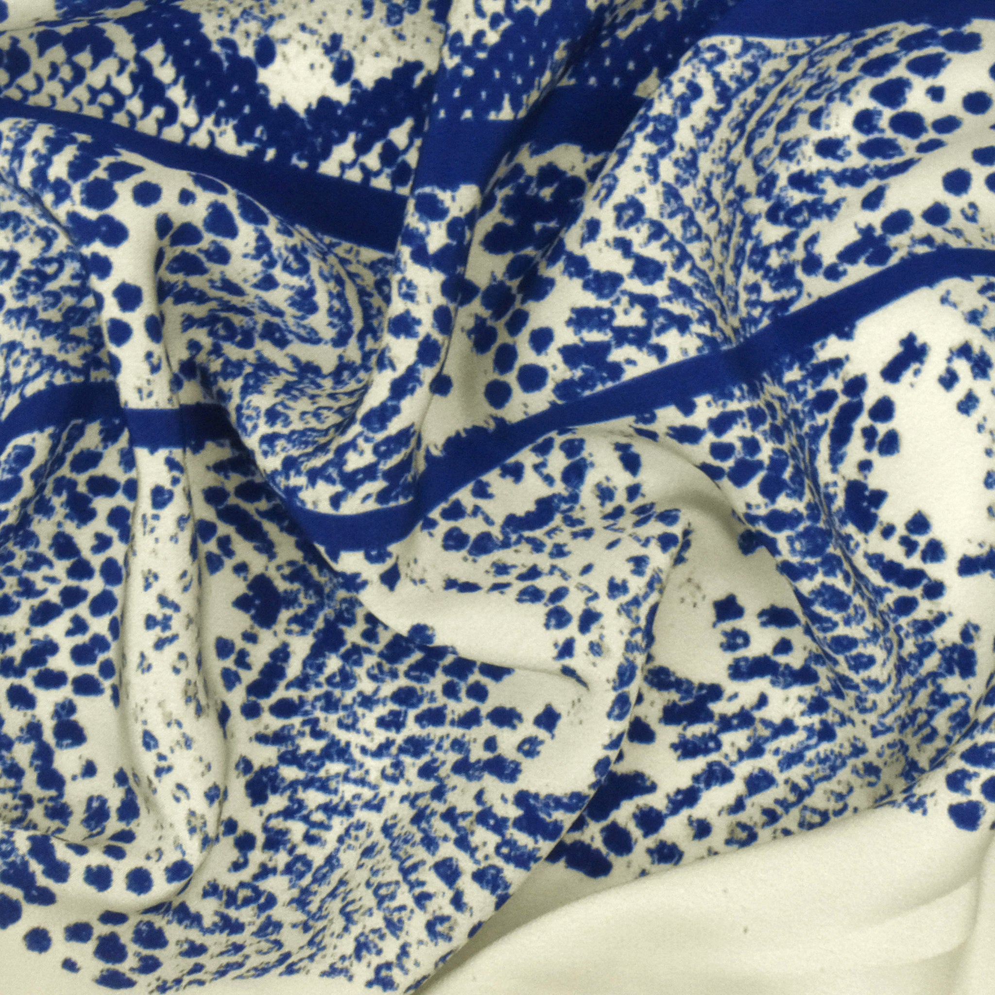 Antique Ivory-Blue Snake Border Panel Printed Silk Crepe De Chine Fabric