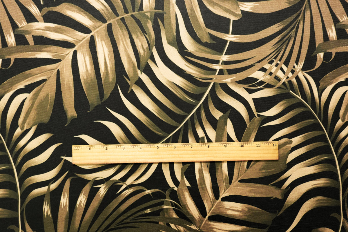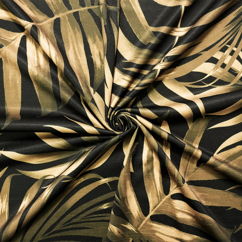 Beige-Black Poly Stretch Leaves Printed ITY Jersey Knit Fabric