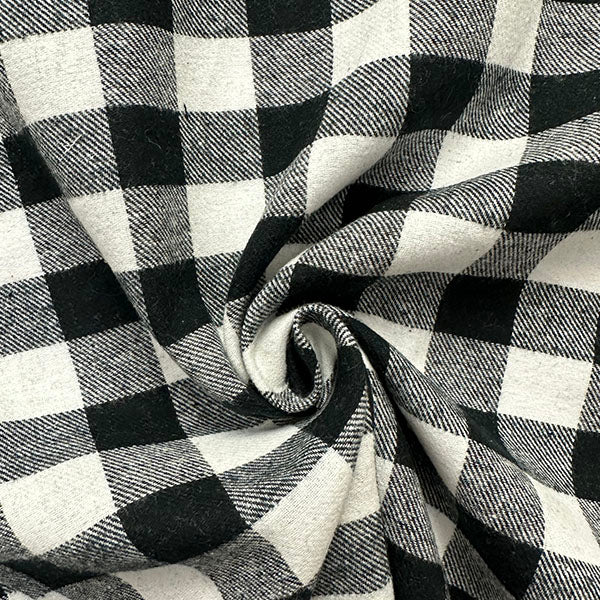 Black and White Buffalo Plaid Yarn Dyed Flannel Fabric