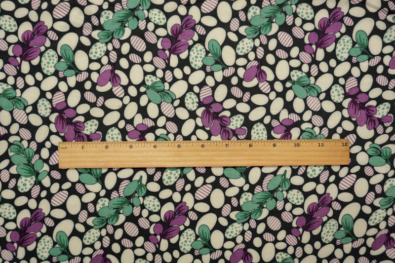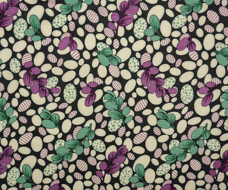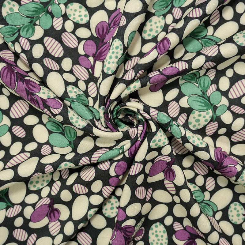 Black-Multi Rayon Abstract-Leaves Printed Challis Woven Fabric