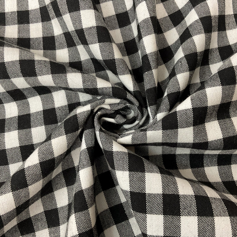 Black-White Cotton Spandex Check Gingham Woven Fabric