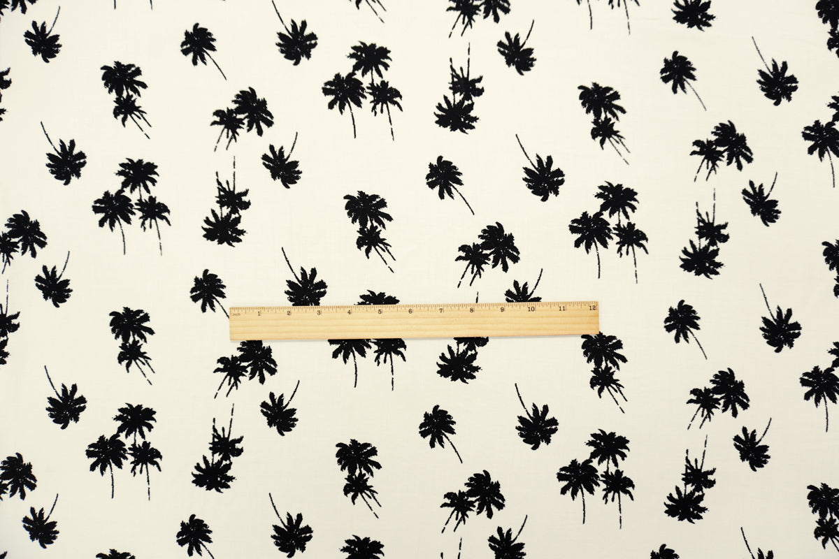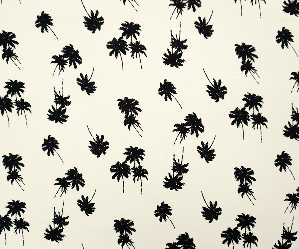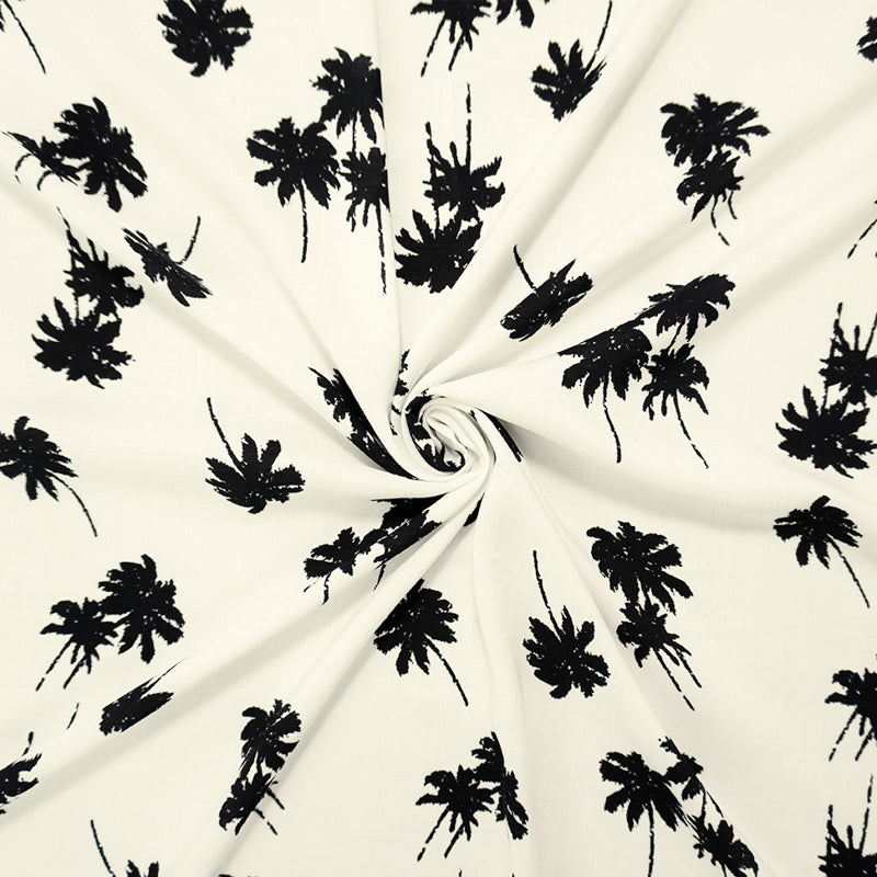 Black-White Rayon Palm Tree Printed Voile Woven Fabric