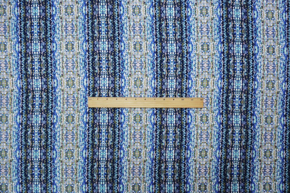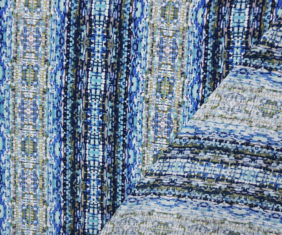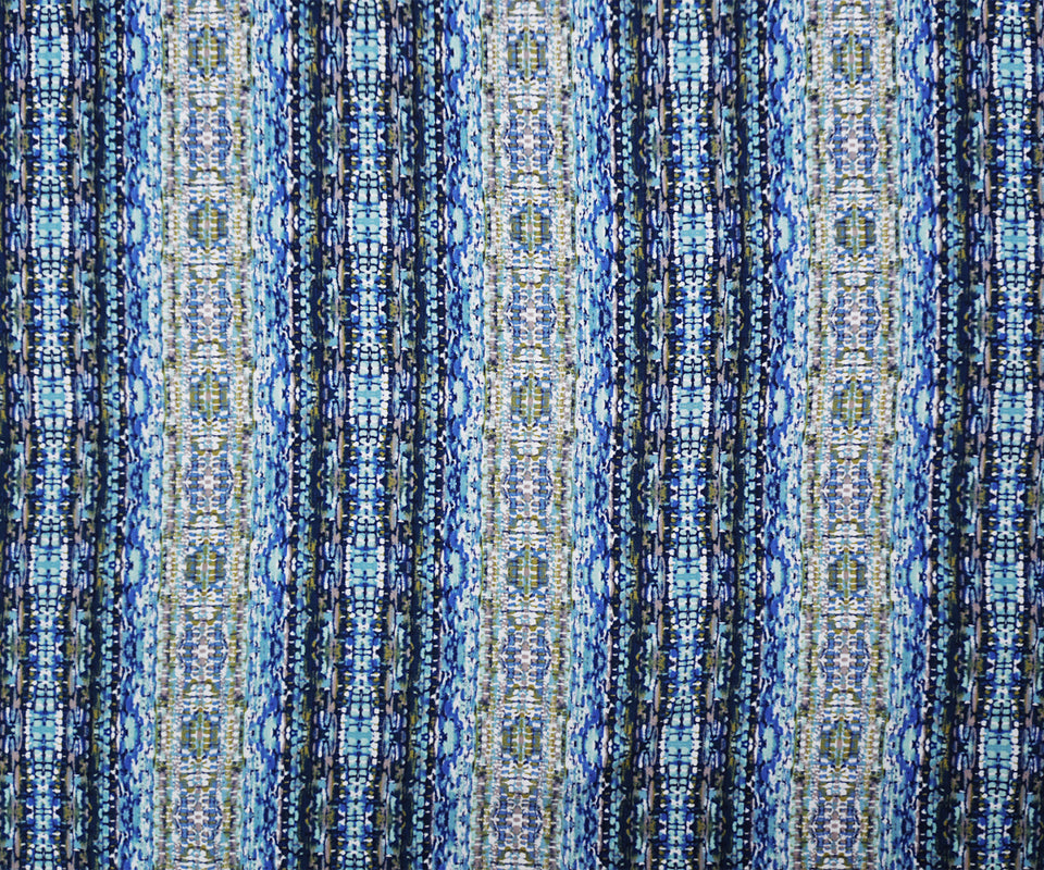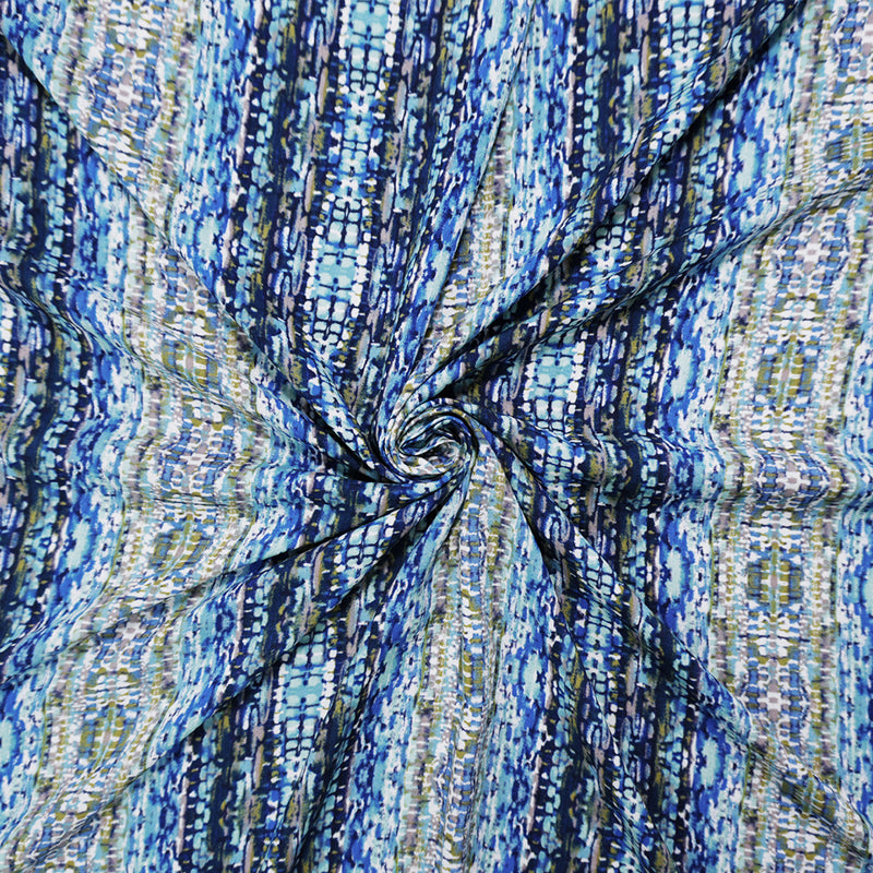 Blue-Green-Multi Rayon Abstract Printed Voile Woven Fabric