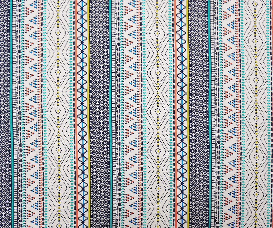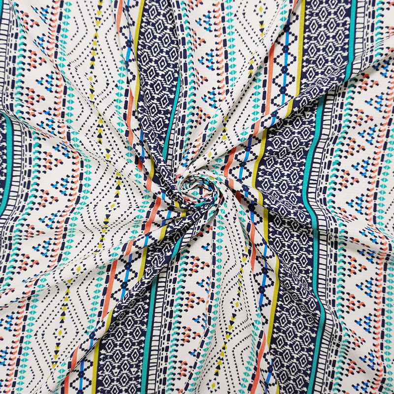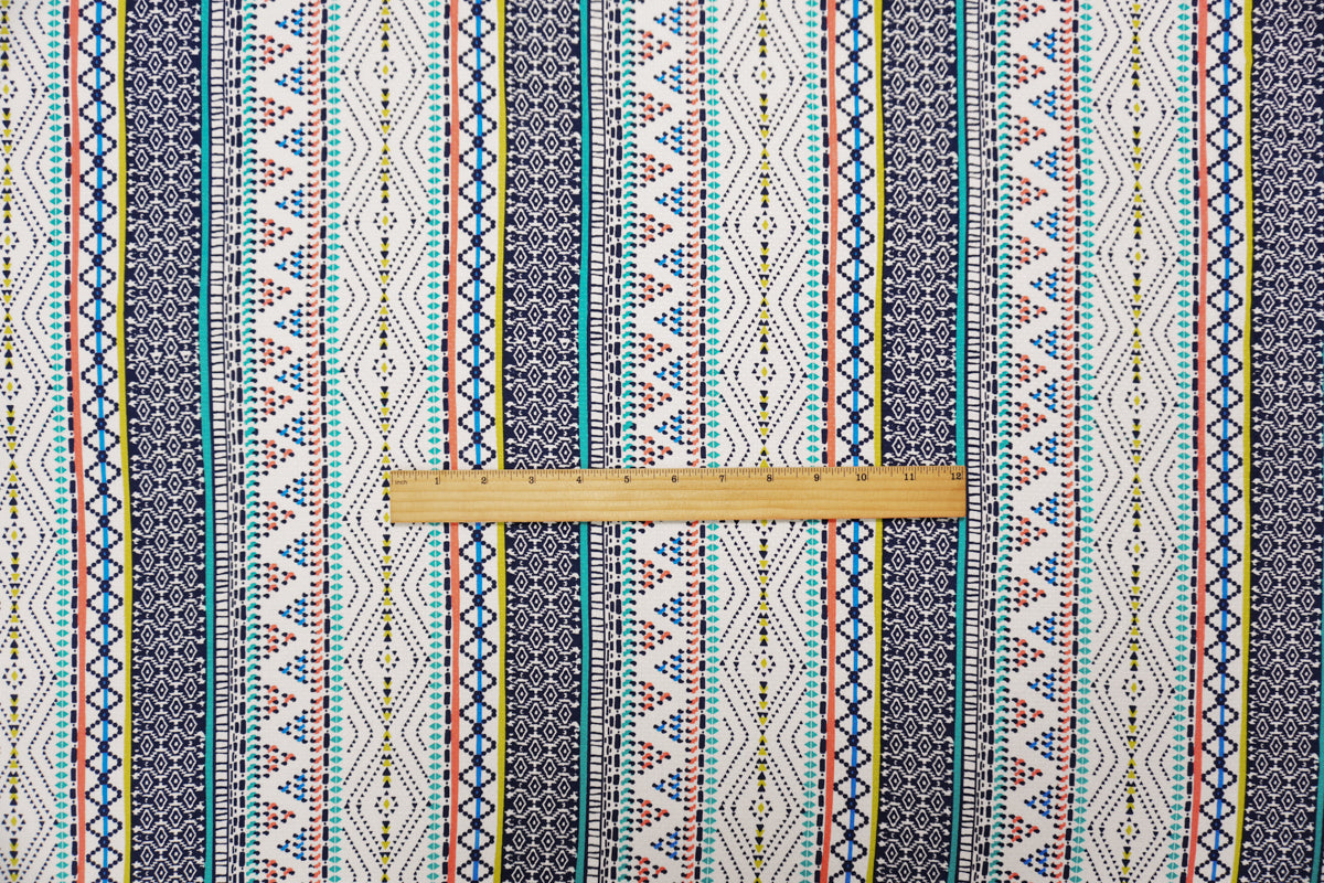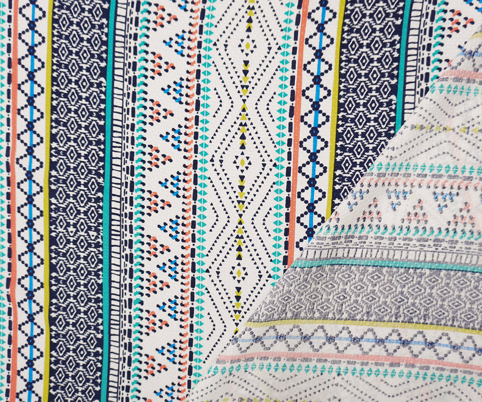 Blue-Multi Rayon Aztec Printed Cross Dobby Jacquard Woven Fabric