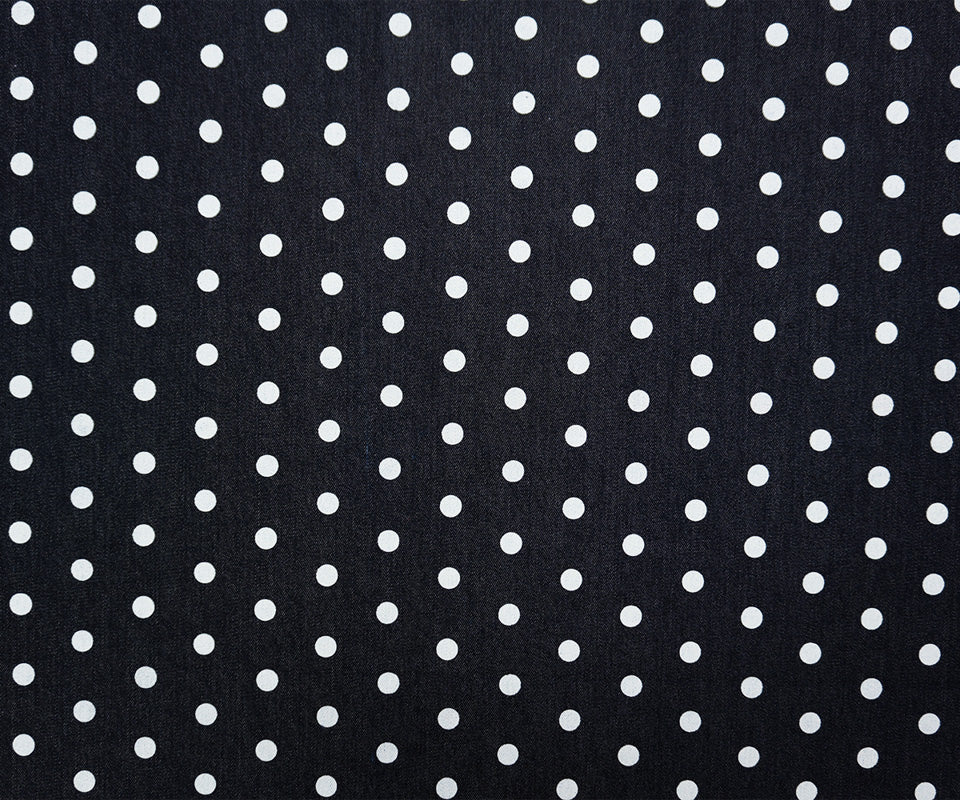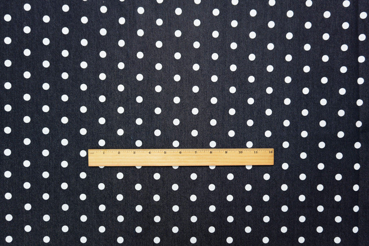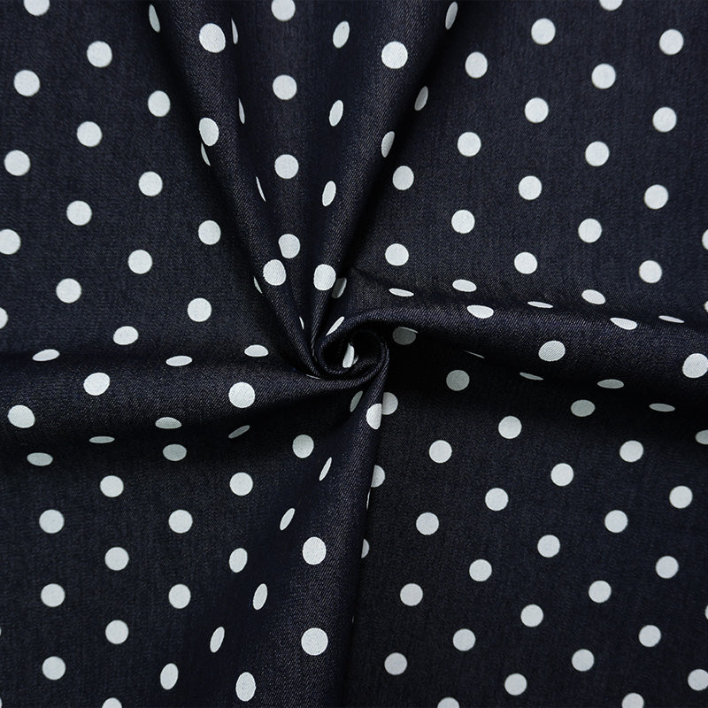 Blue-White 10 oz. Cotton Stretch Dot Print Denim Woven Fabric