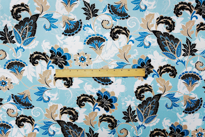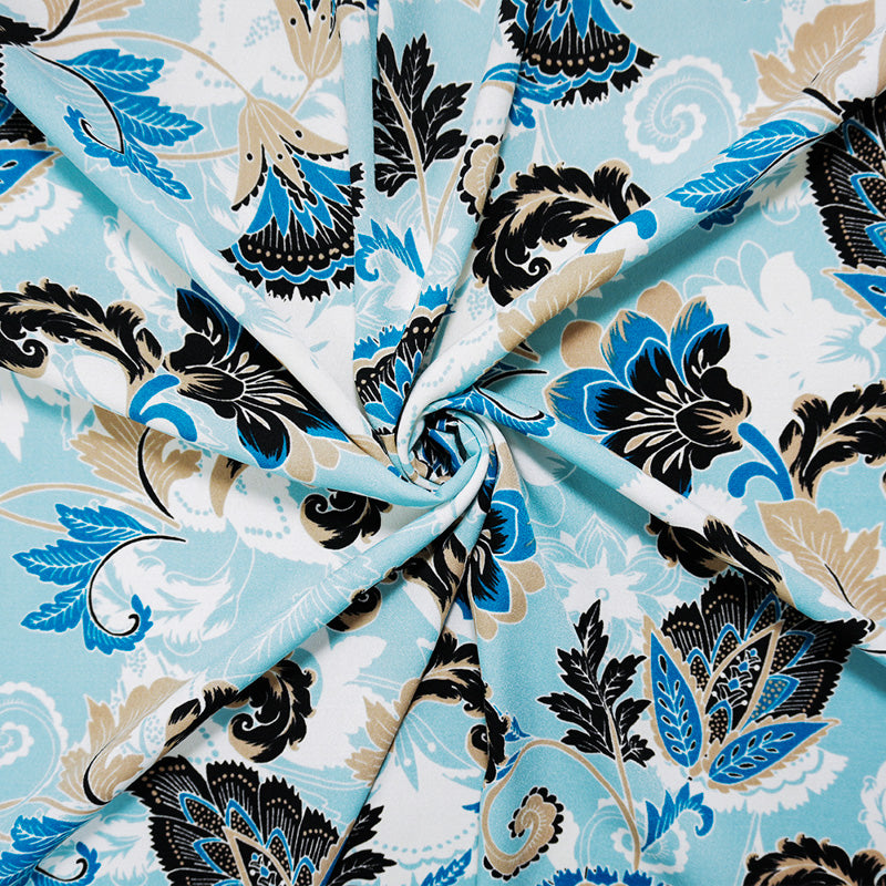 Blue-White-Multi Poly Floral Printed Crepe Woven Fabric
