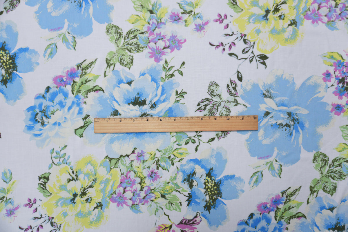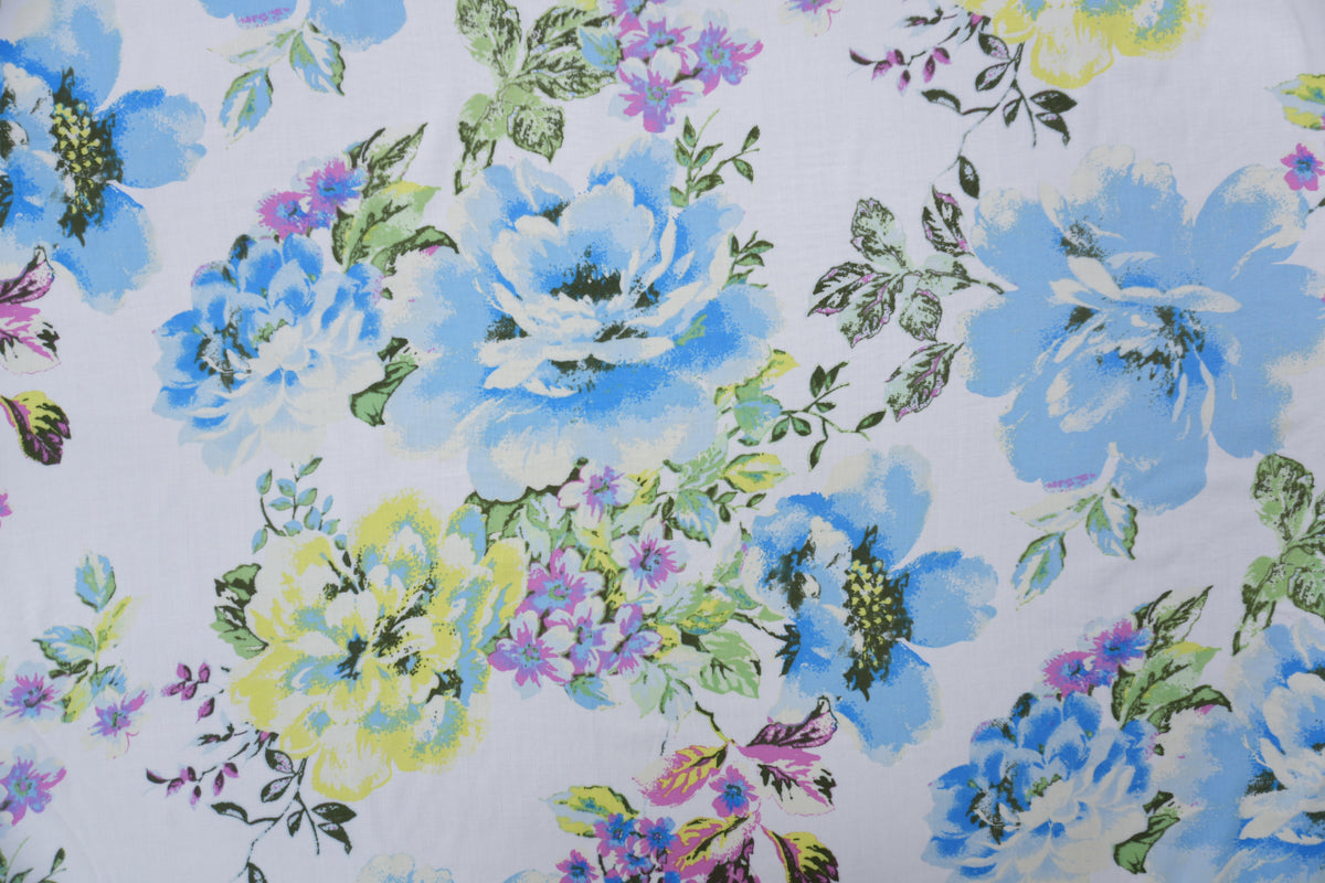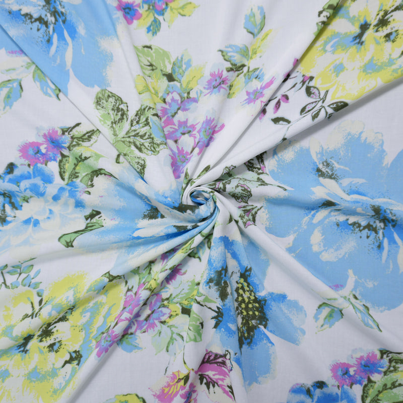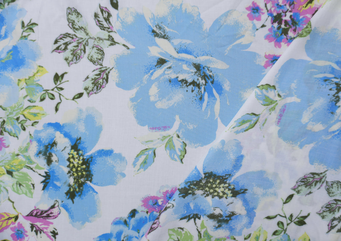Blue-White-Multi Rayon Floral Printed Voile Woven Fabric