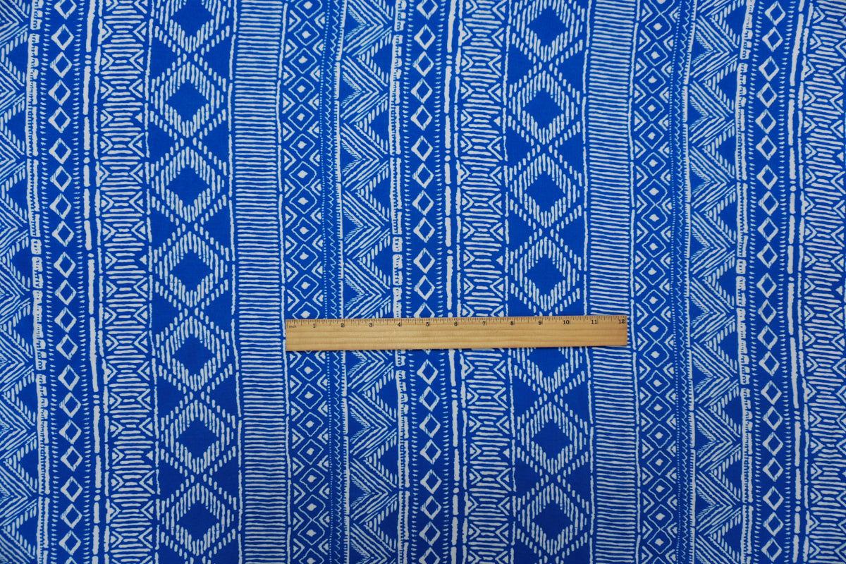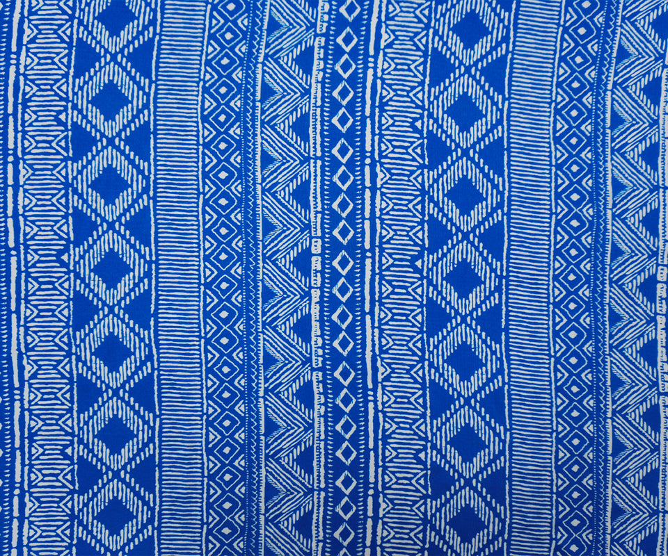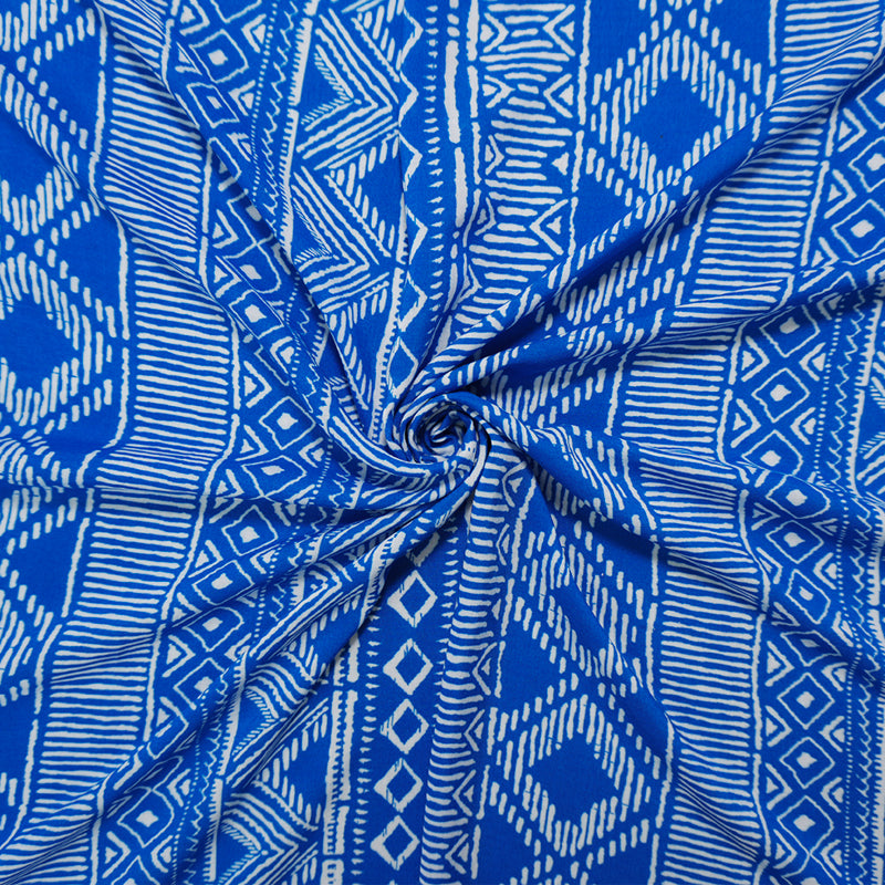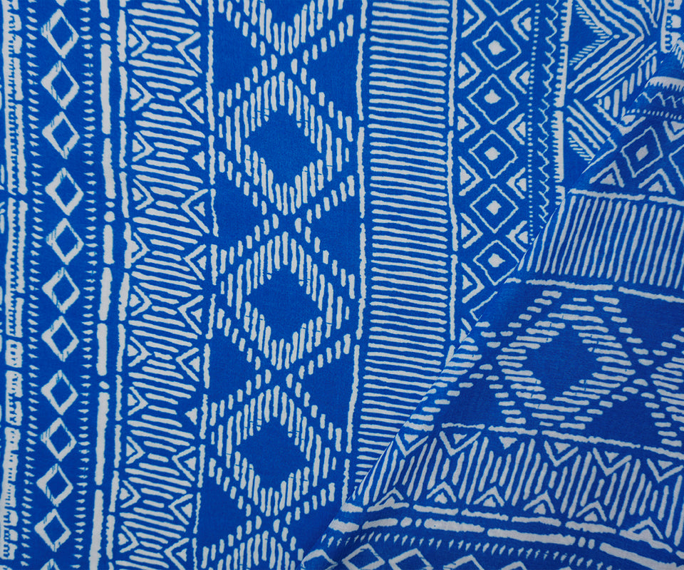 Blue-White Rayon Aztec Printed Voile Woven Fabric