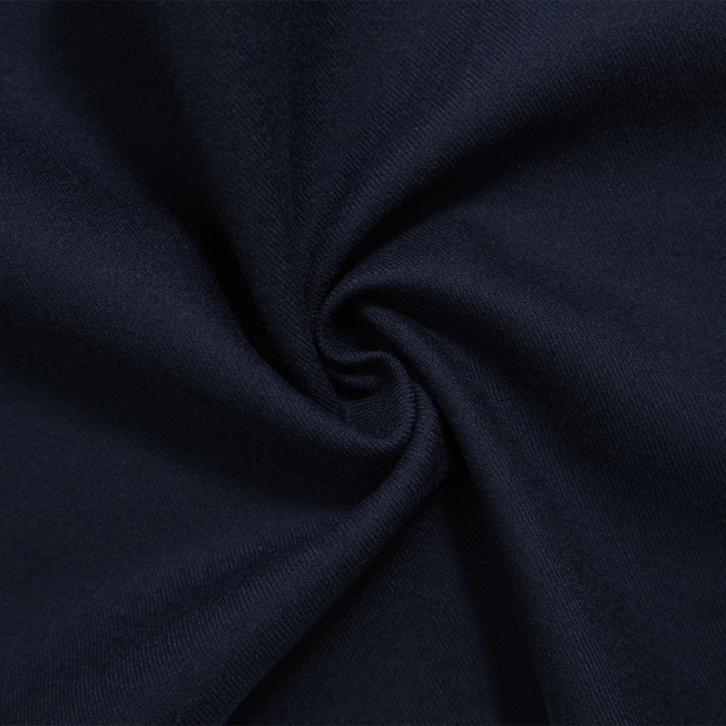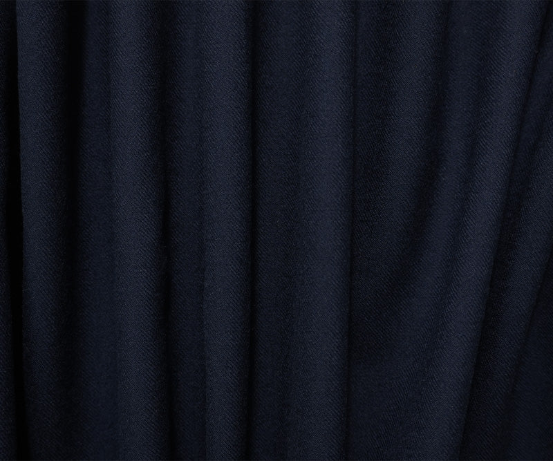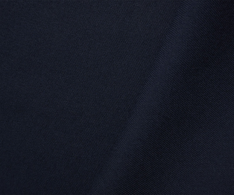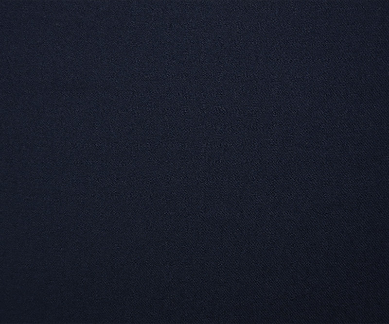 -Solid twill woven suiting with wool-rayon blend for fluid drape and refined luster.