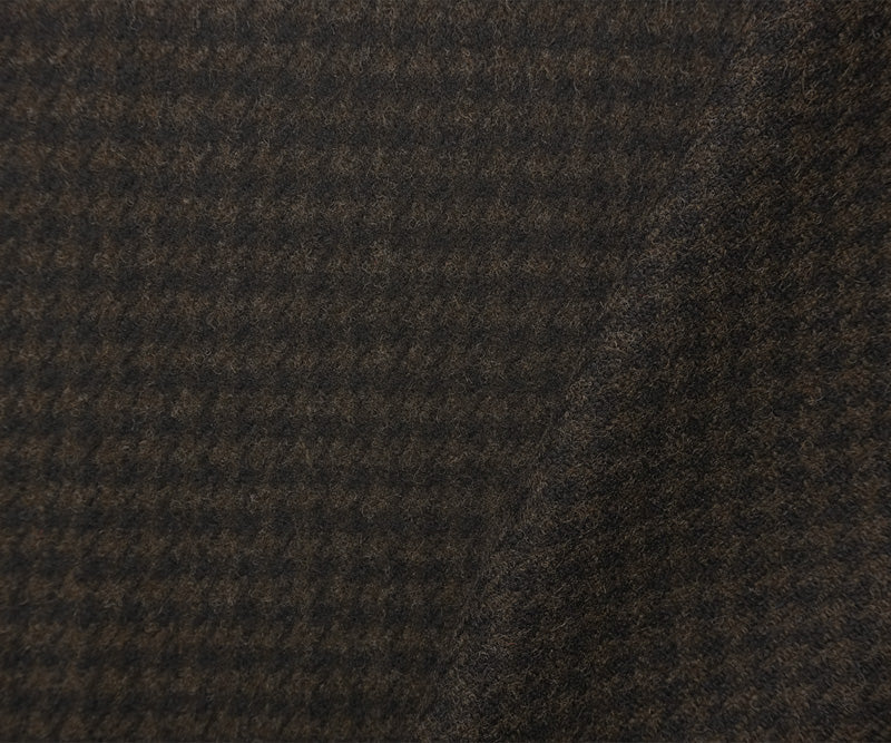 Brown-Black Wool Poly Houndstooth Twill Woven Coating Fabric