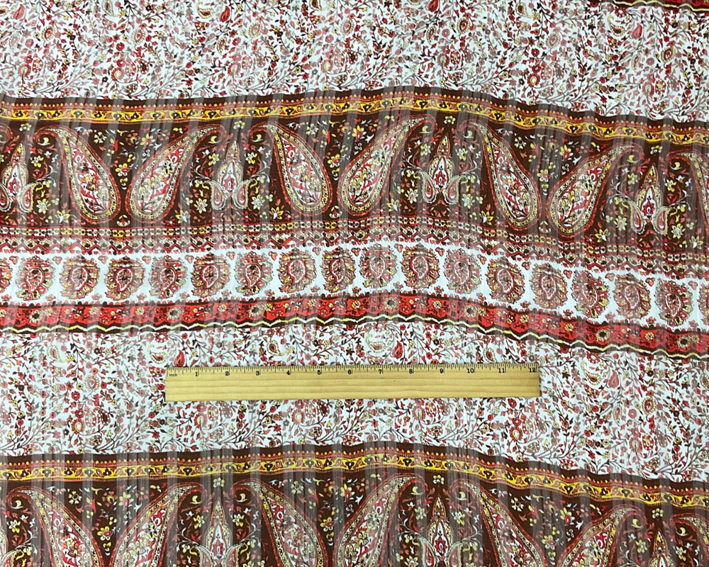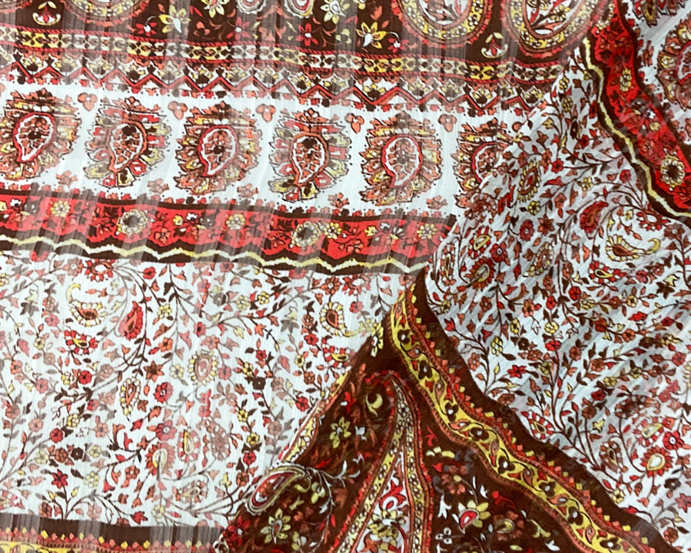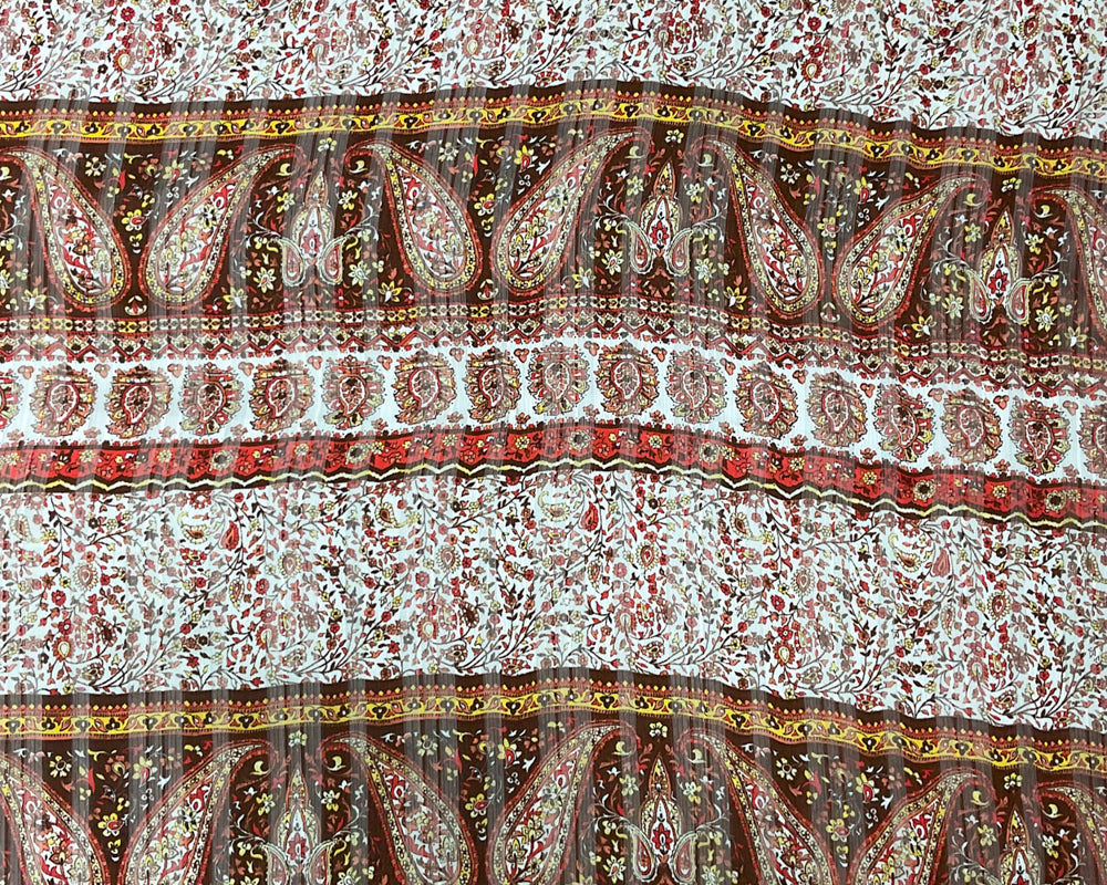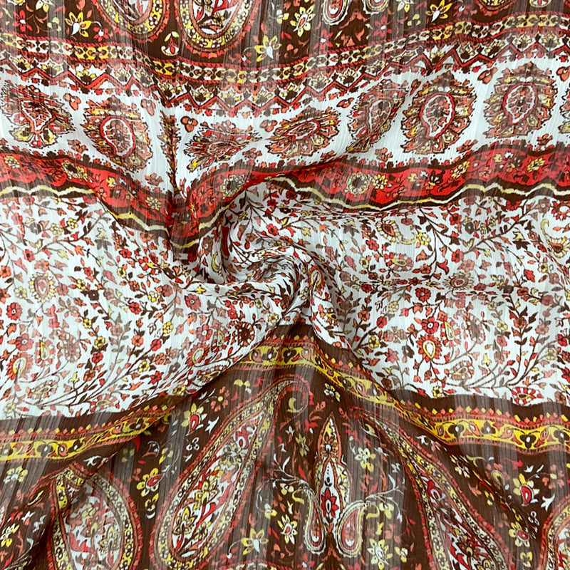 Brown-Multi Poly Paisley Print Satin Stripe Chiffon Woven Fabric