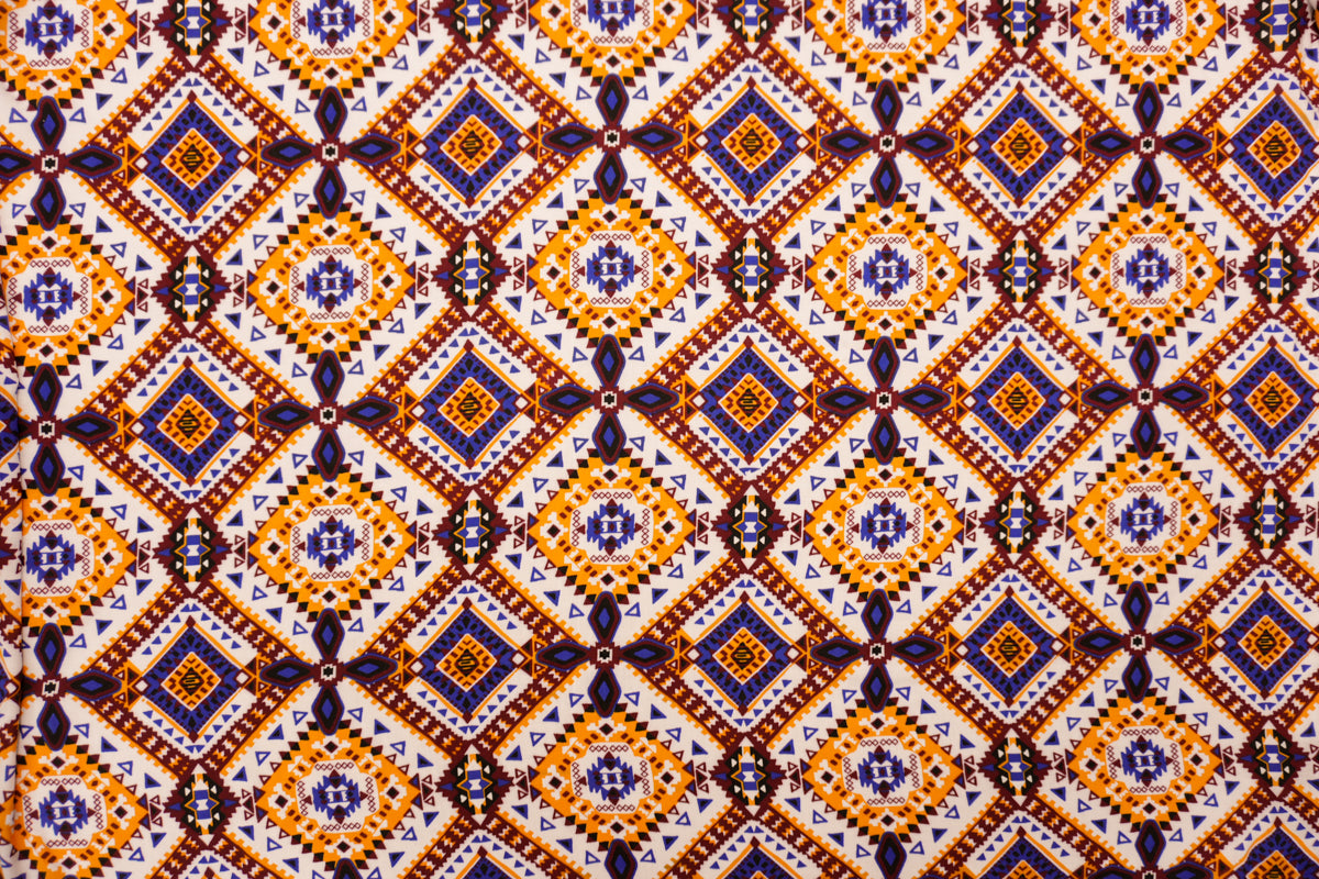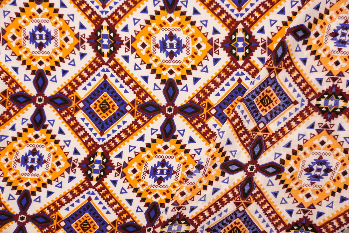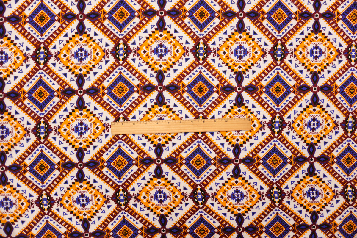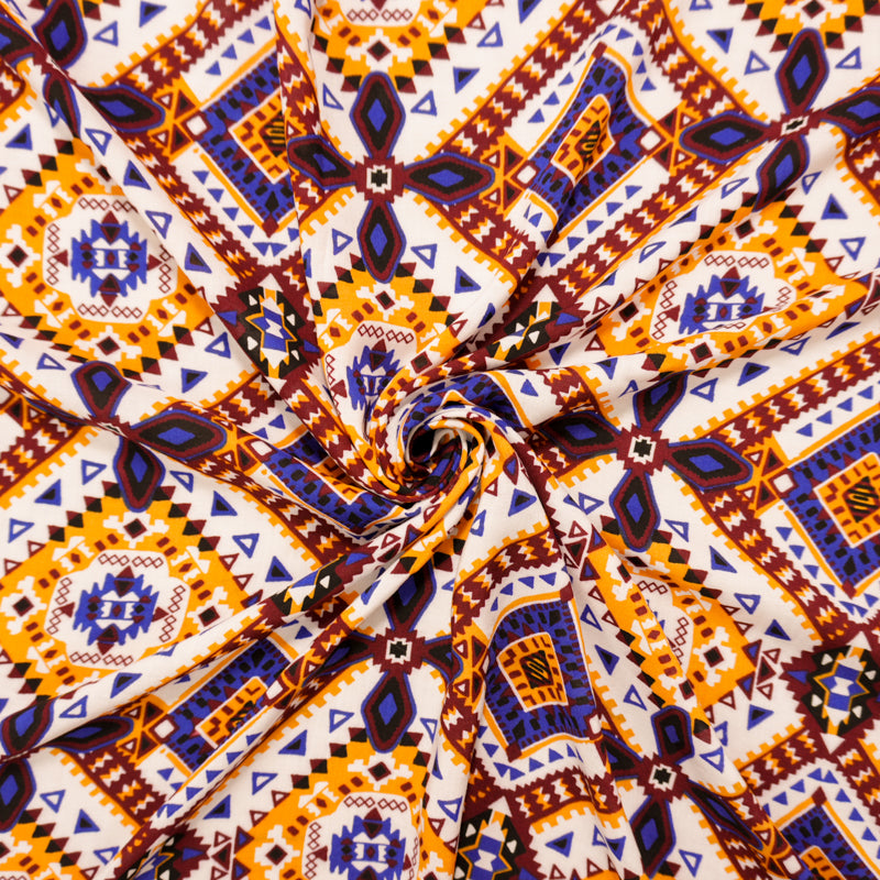 Brown-White-Multi Rayon Aztec Printed Voile Woven Fabric