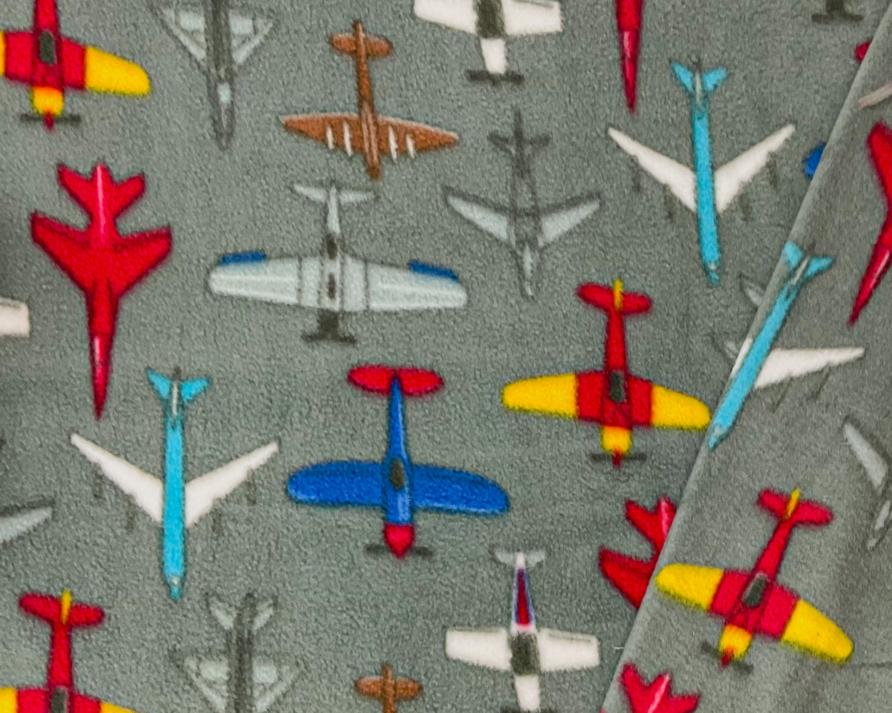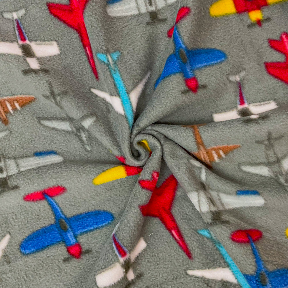 Gray-Multi Polyester Airplane Printed Polar Fleece Knit Fabric