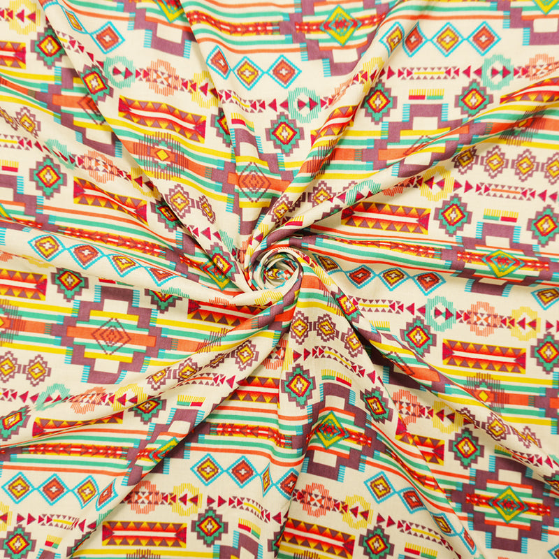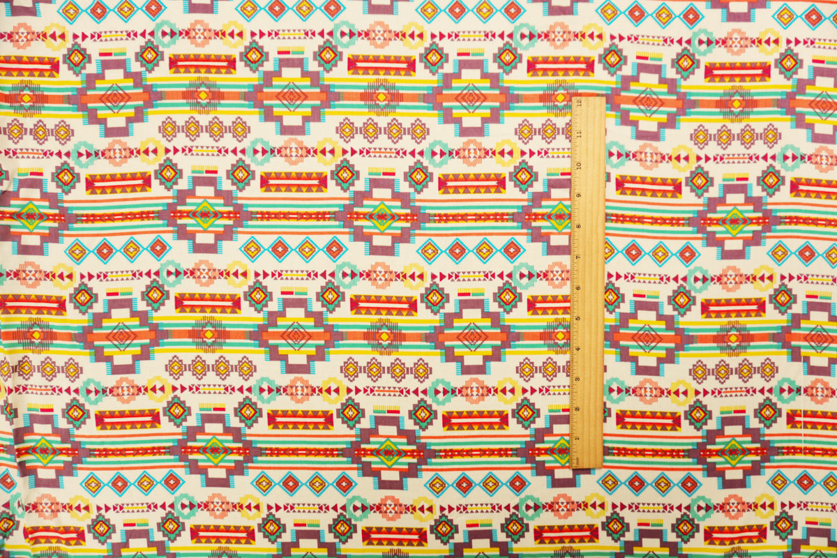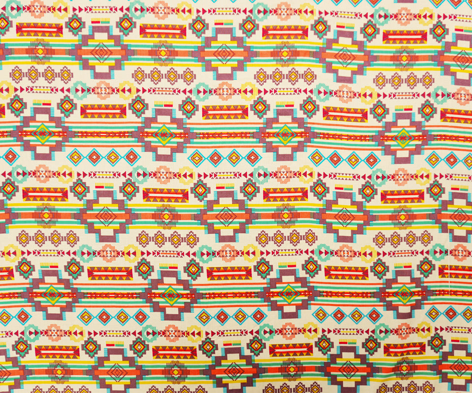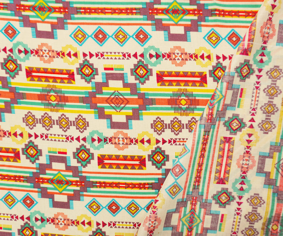 Ivory-Orange-Multi Rayon Aztec Printed Voile Woven Fabric