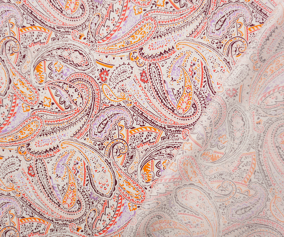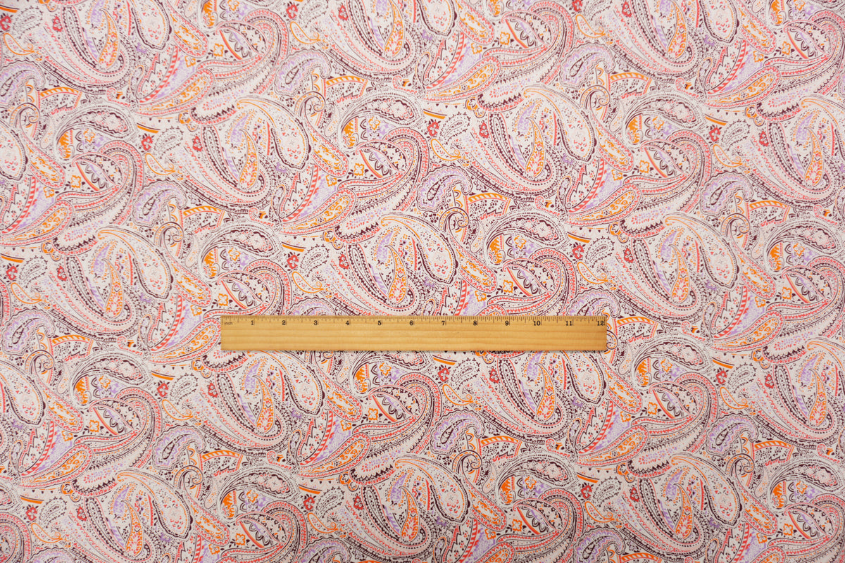 Orange-Multi Washed Rayon Paisley Printed Twill Woven Fabric