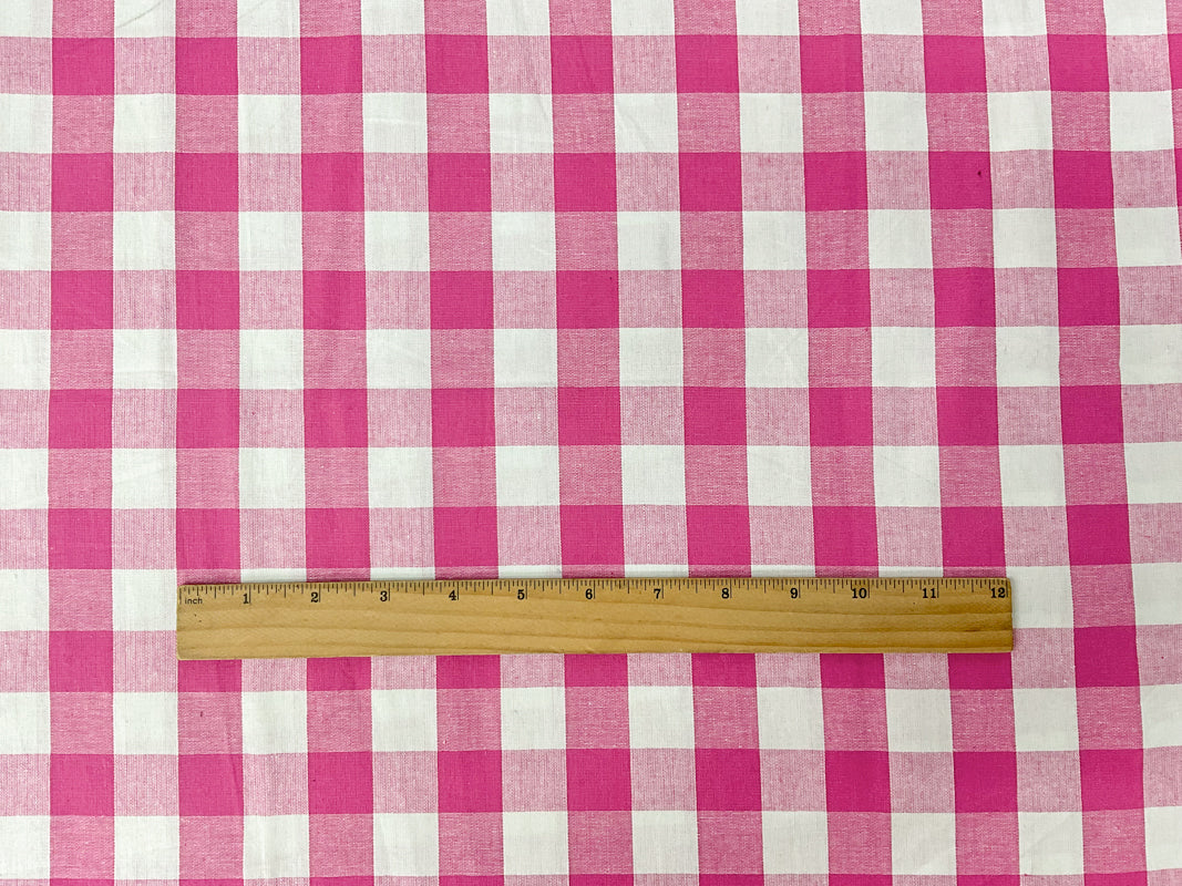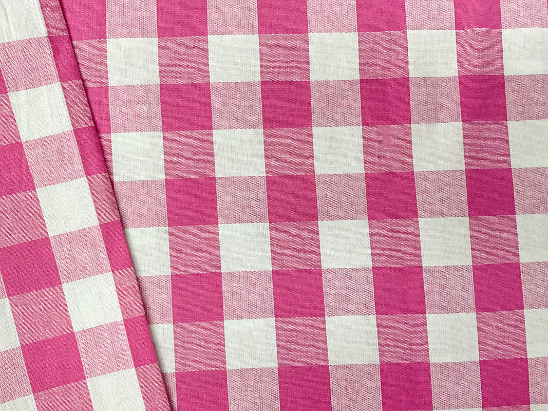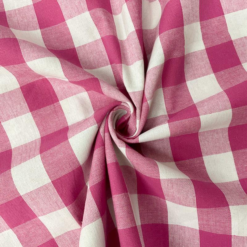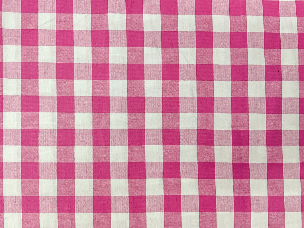 Pink-White Cotton Spandex Check Gingham Woven Fabric
