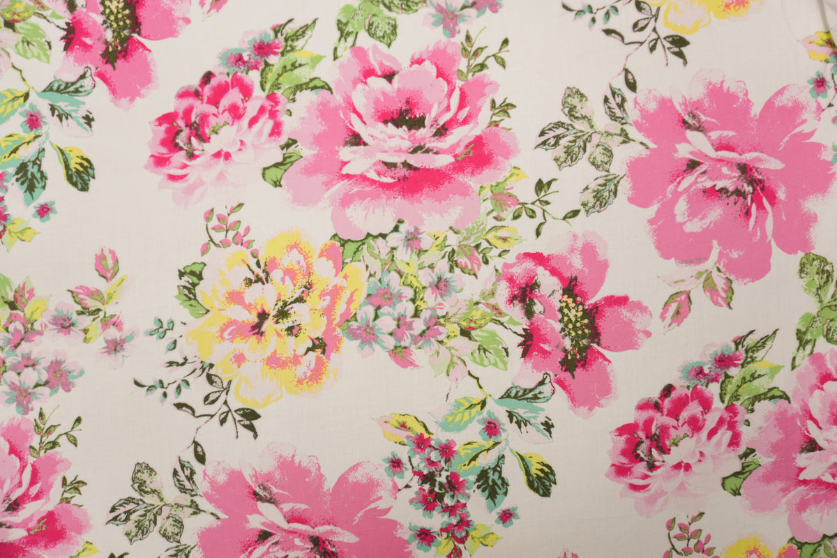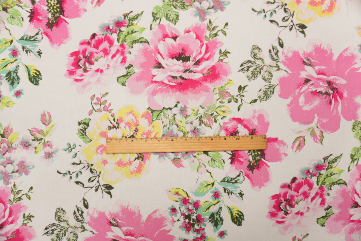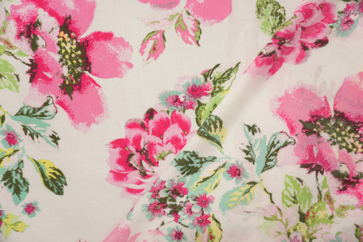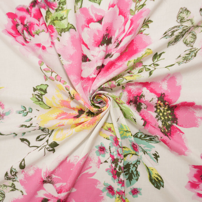 Pink-White-Multi Rayon Floral Printed Voile Woven Fabric