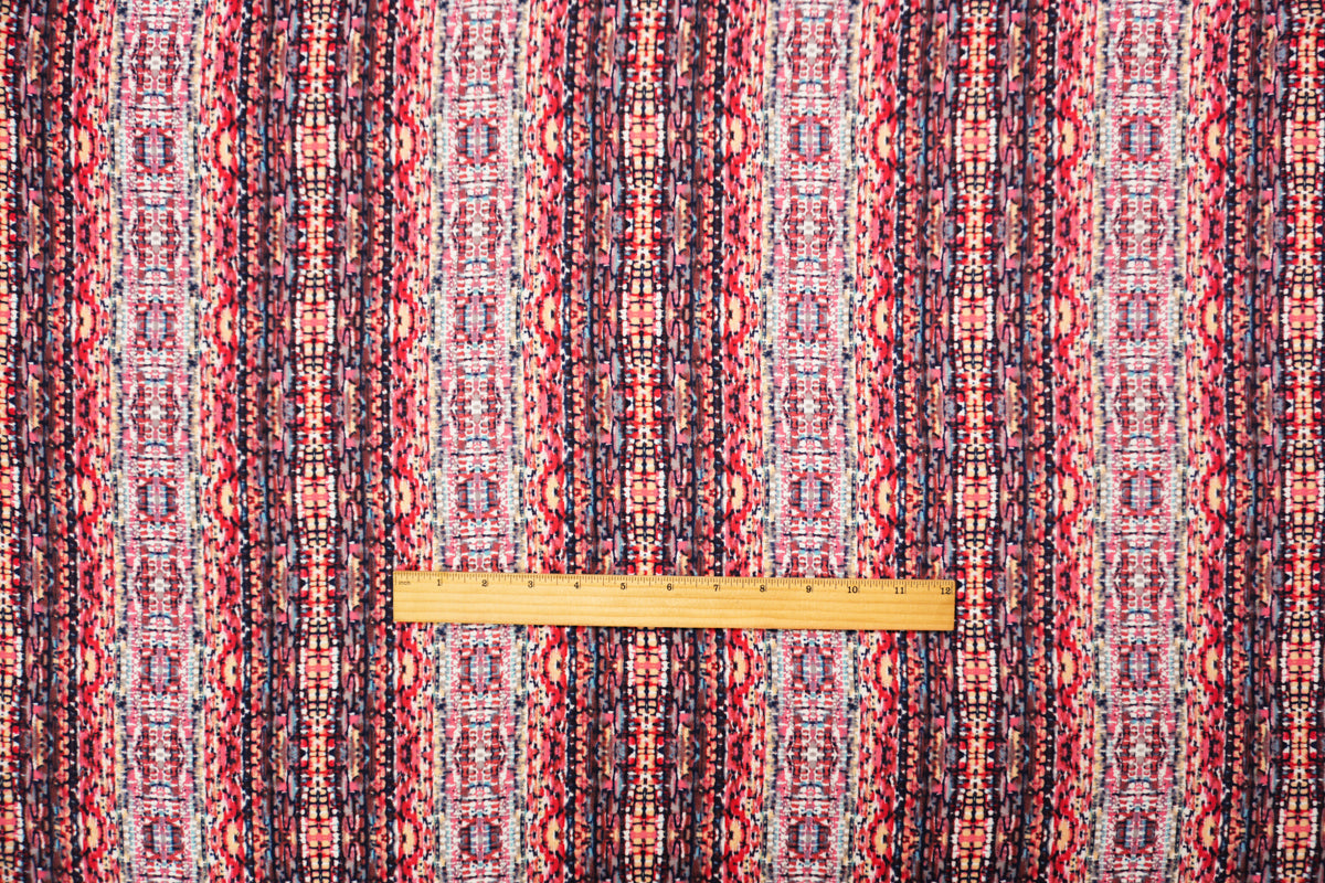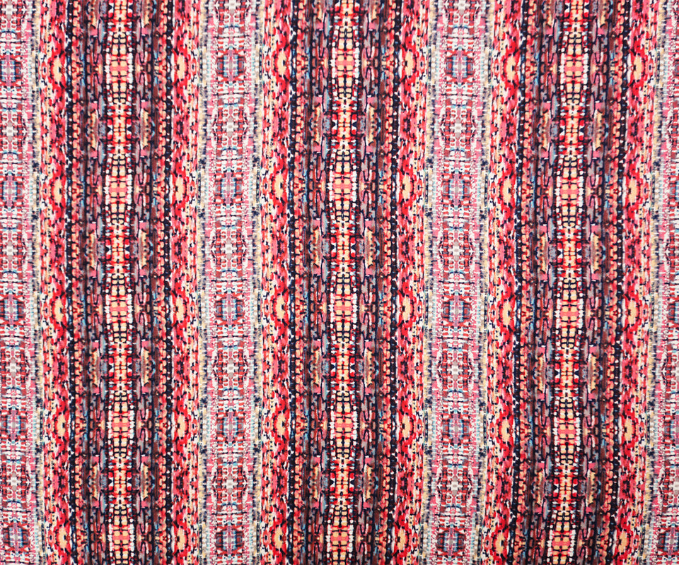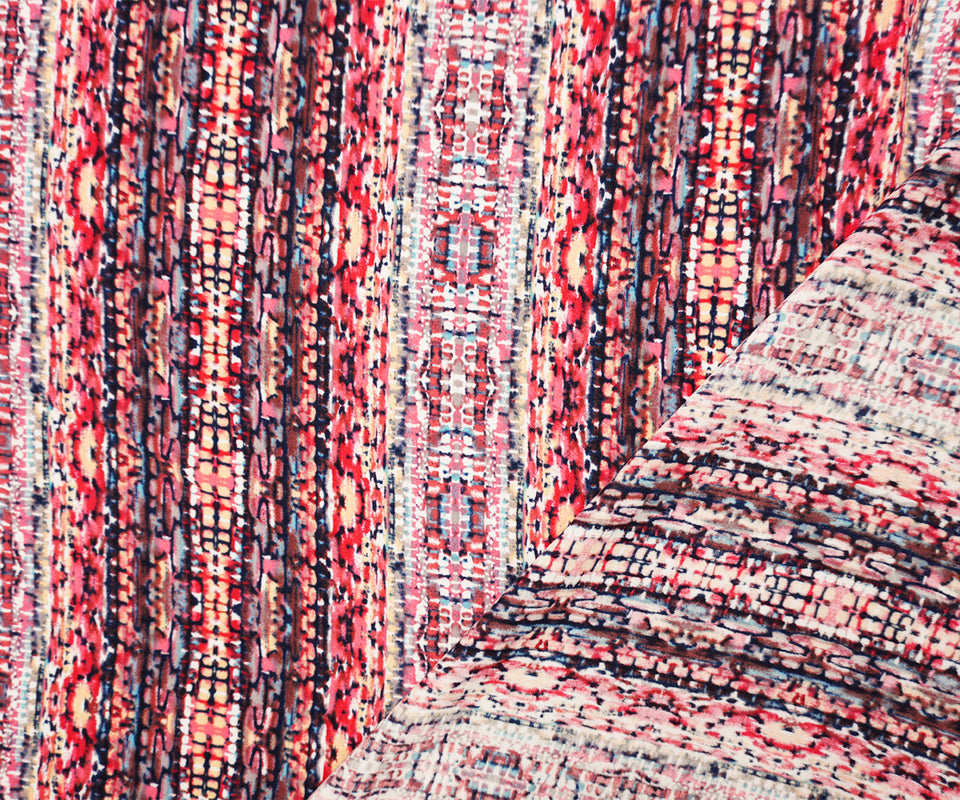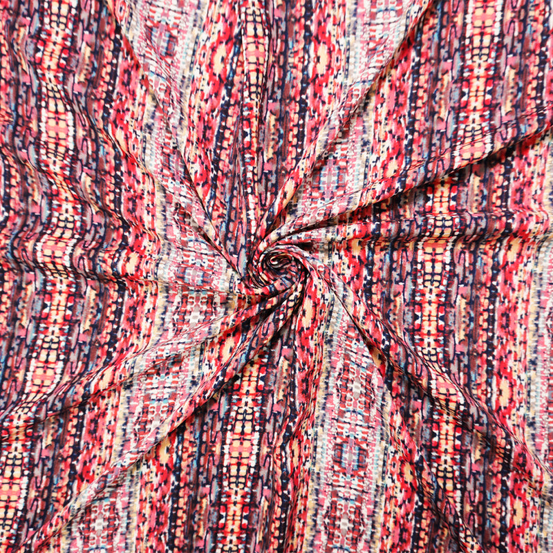 Red-Blue-Multi Rayon Abstract Printed Voile Woven Fabric