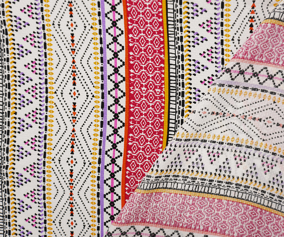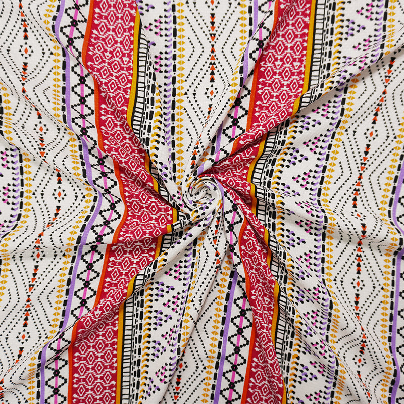 Red-Multi Rayon Geometric Print Cross Dobby Jacquard Woven Fabric