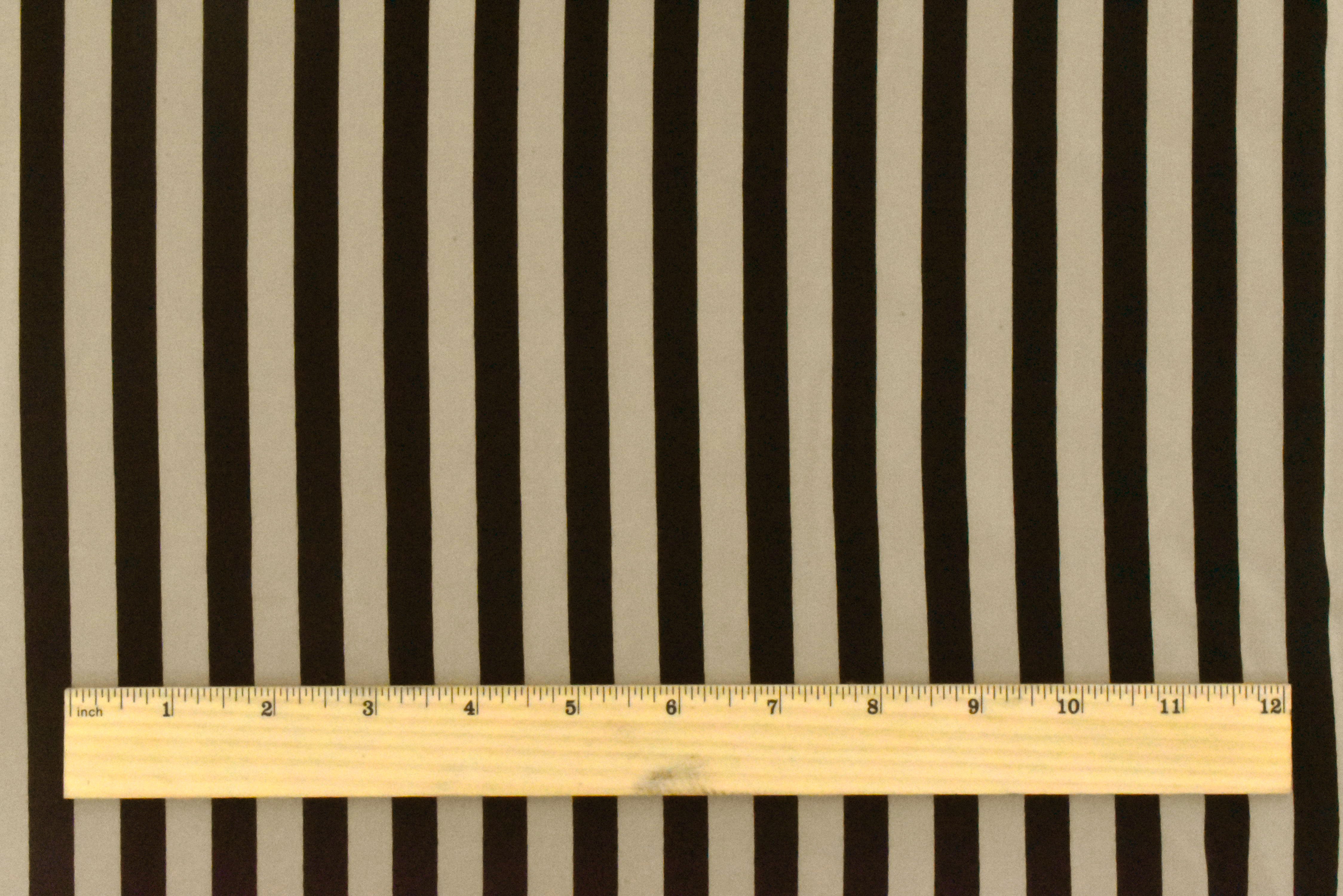 Taupe Beige-Black Stripe Printed Silk Crepe De Chine Woven Fabric