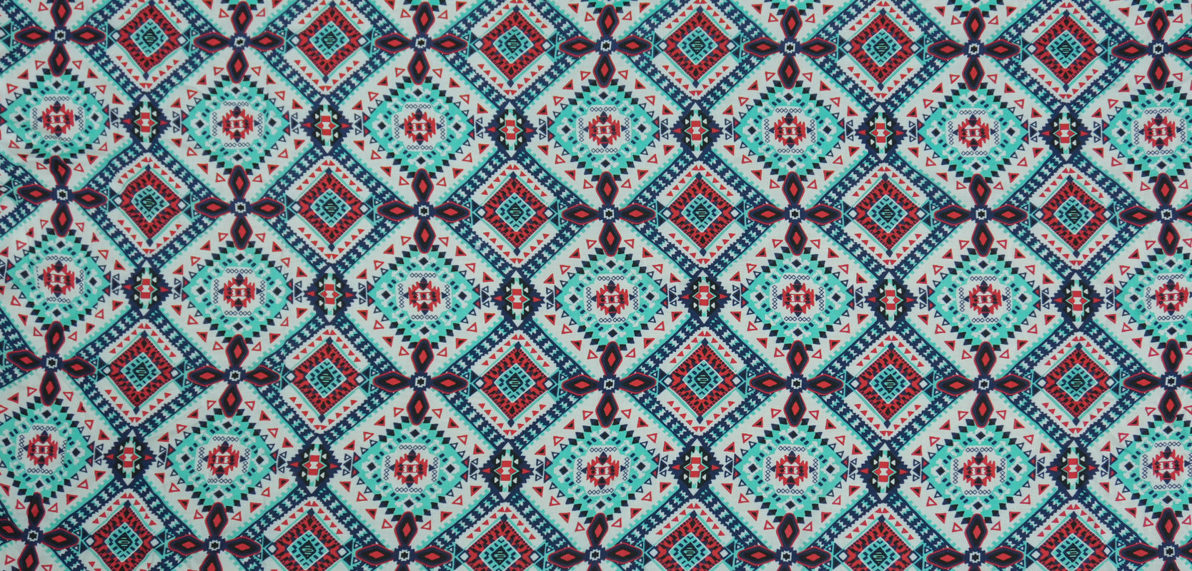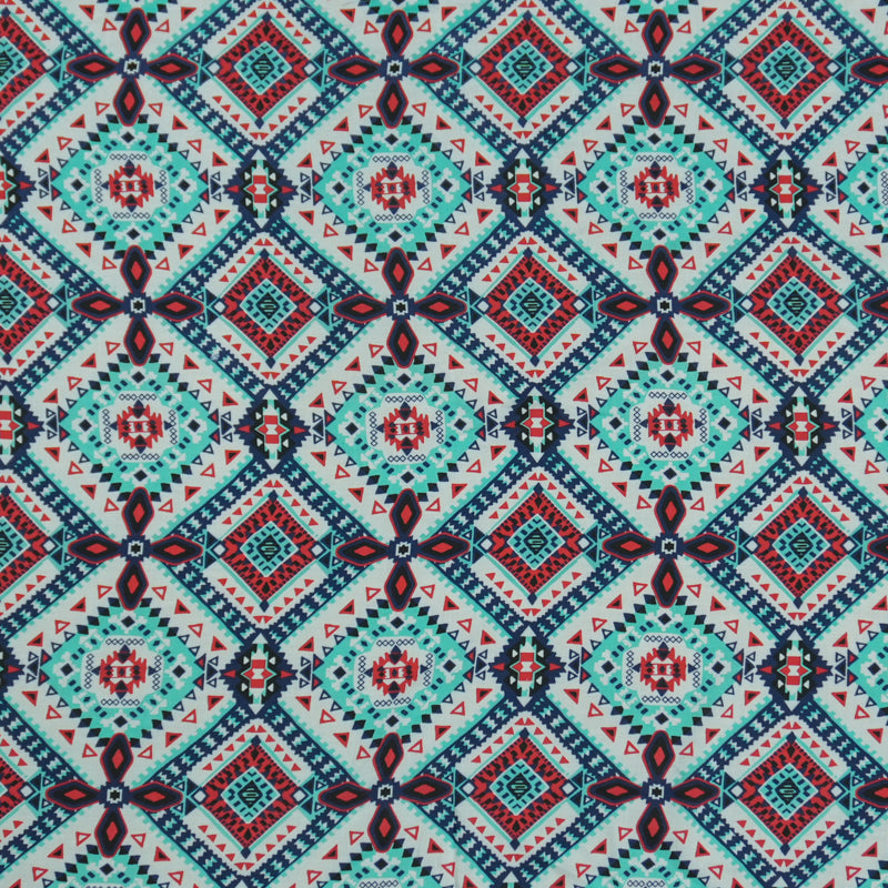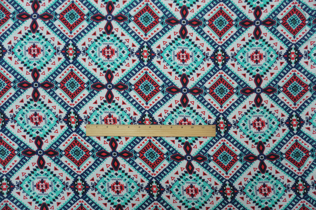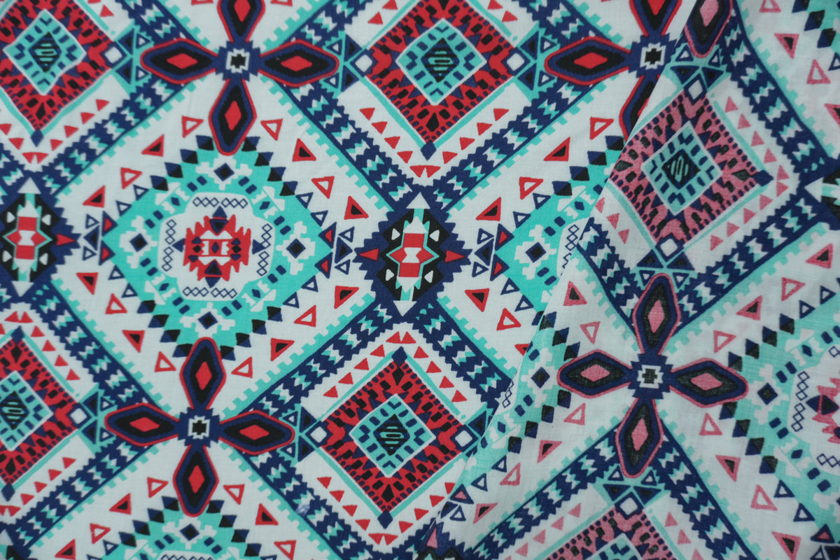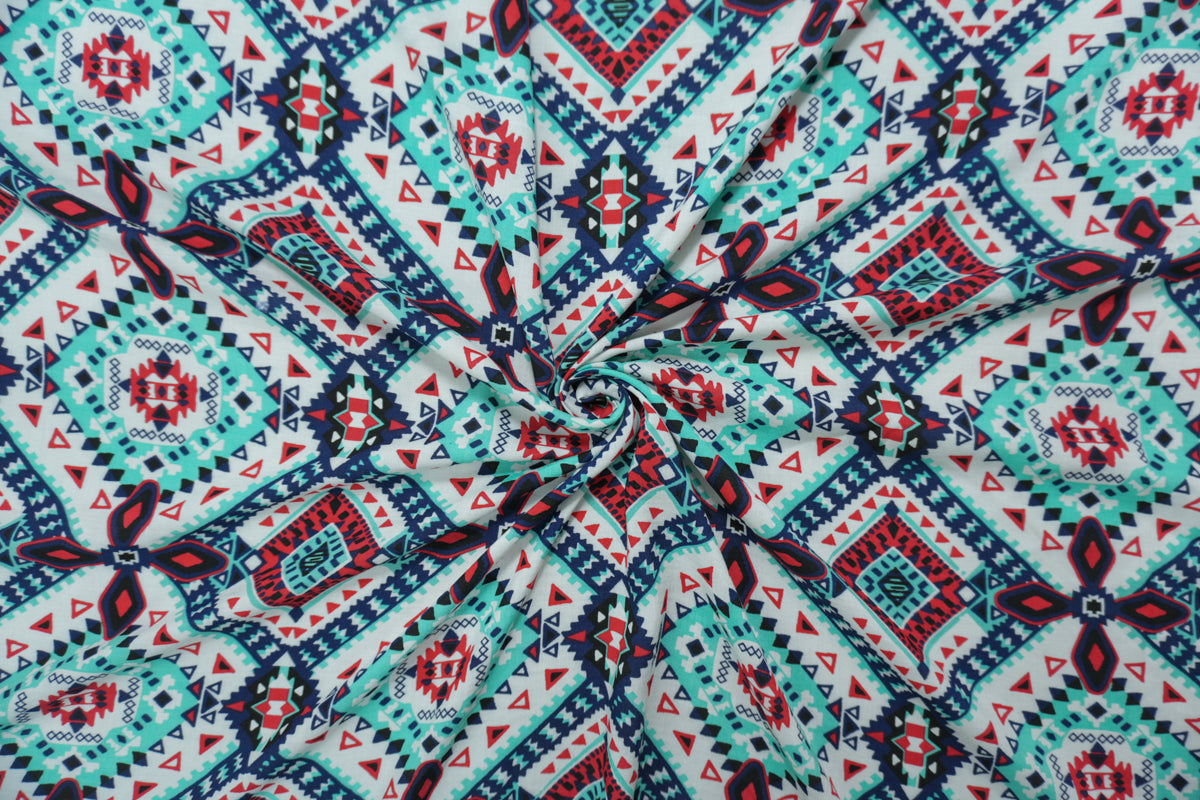 Teal-Red-Multi Rayon Aztec Printed Voile Woven Fabric