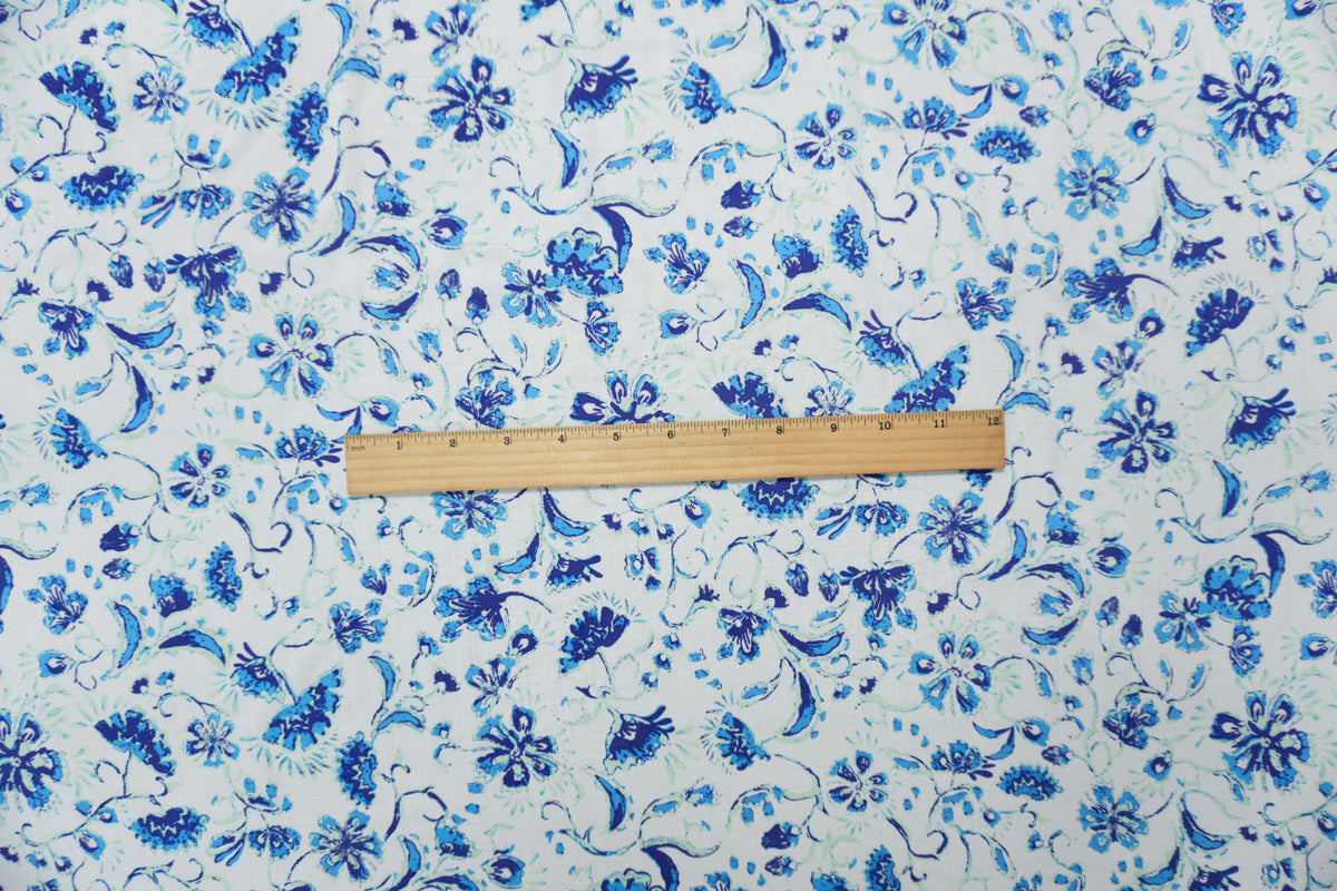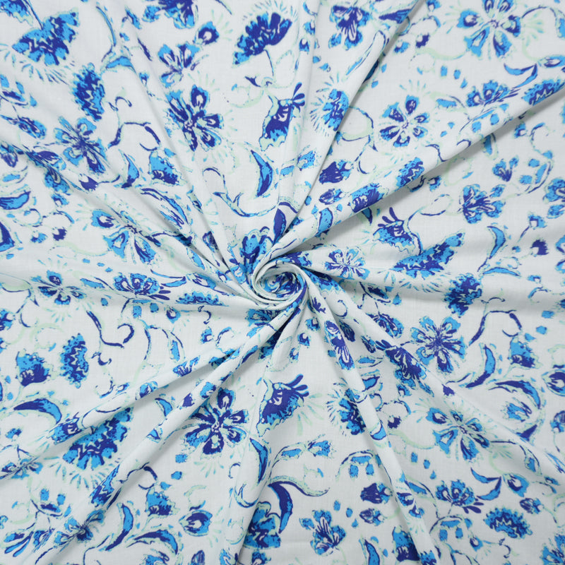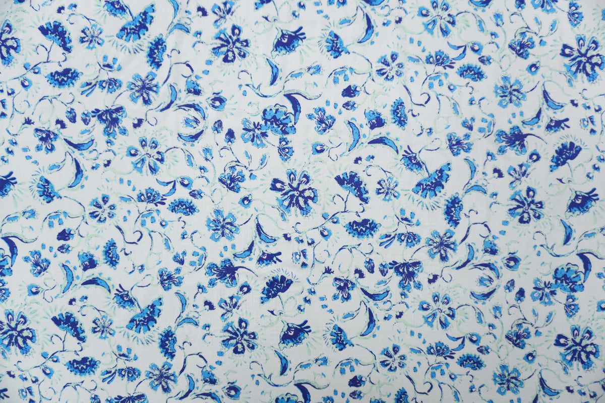 White-Blue-Teal Rayon Floral Printed Voile Woven Fabric