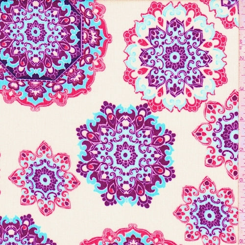 Cream/Turquoise/Red Mandala Crepon Fabric