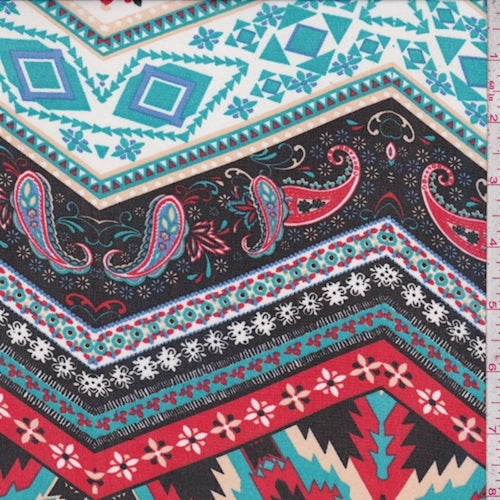 Black/Red/Turquoise Deco Chevron Georgette Fabric