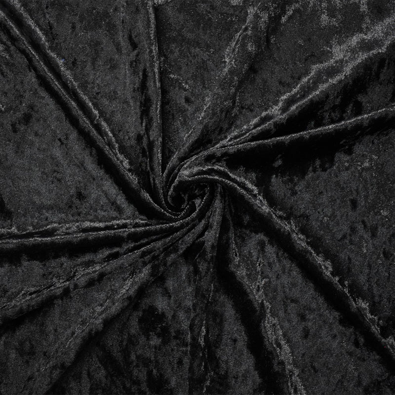 Black Poly Stretch Spandex Solid Crushed Velvet Knit Fabric
